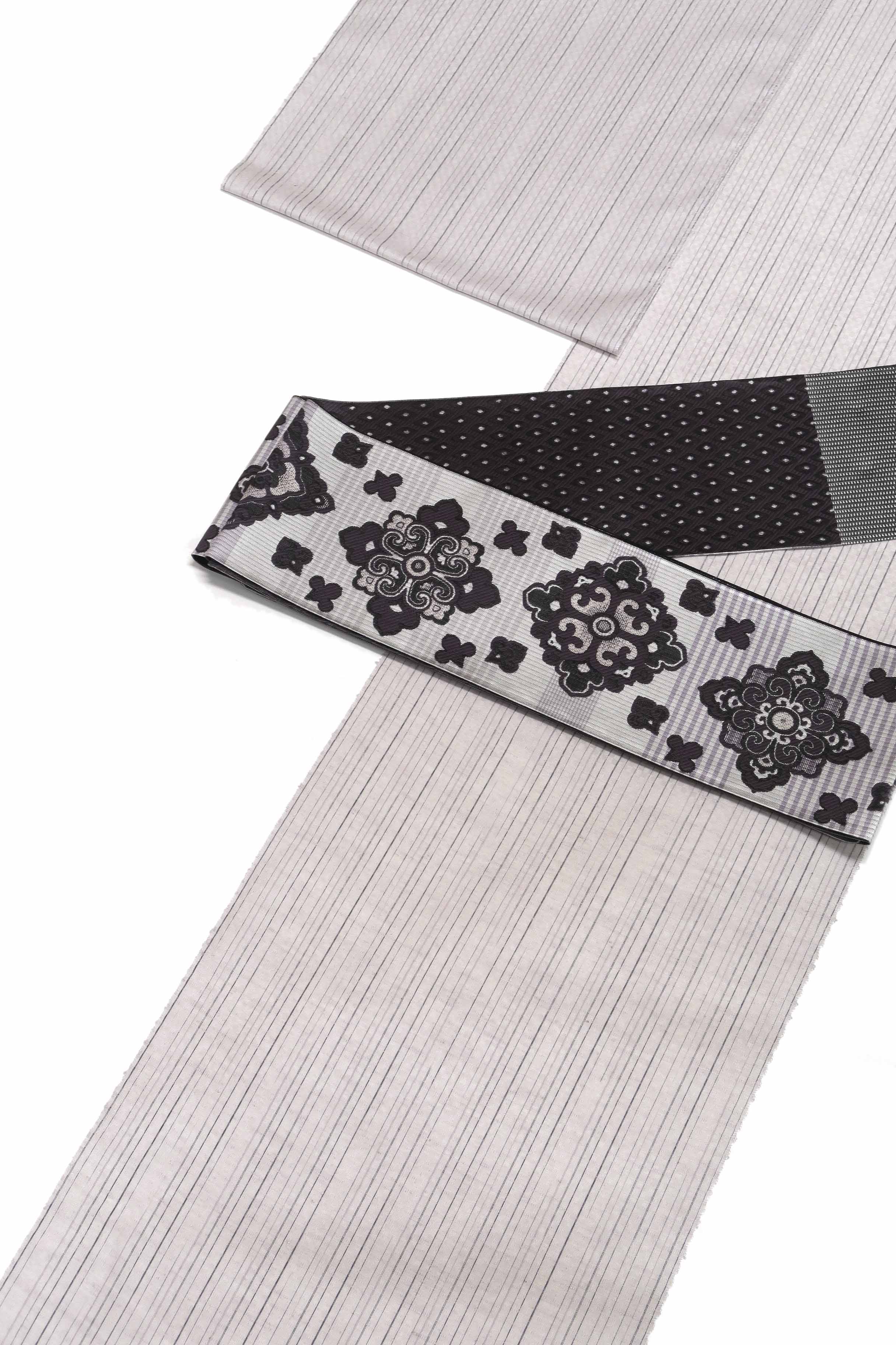 ここでは、お洒落用の八寸名古屋帯に紋紗で黒地の羽織を合わせてみました。