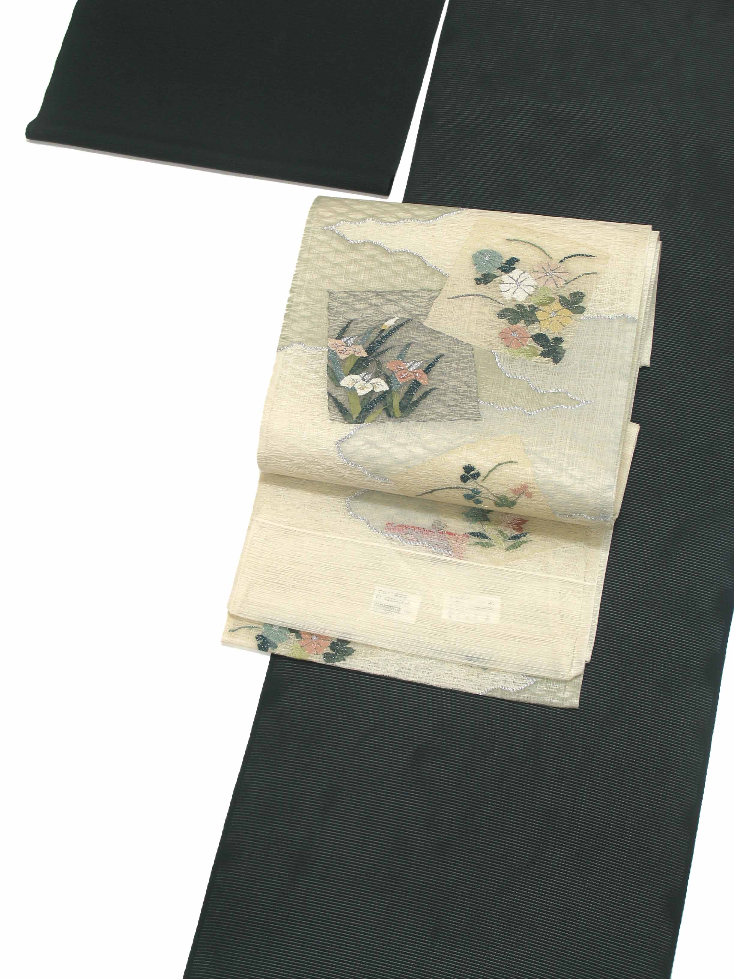 - 生地 : 五本駒絽、絹100%、幅38.2cm、長さ13.2m、重さ750g