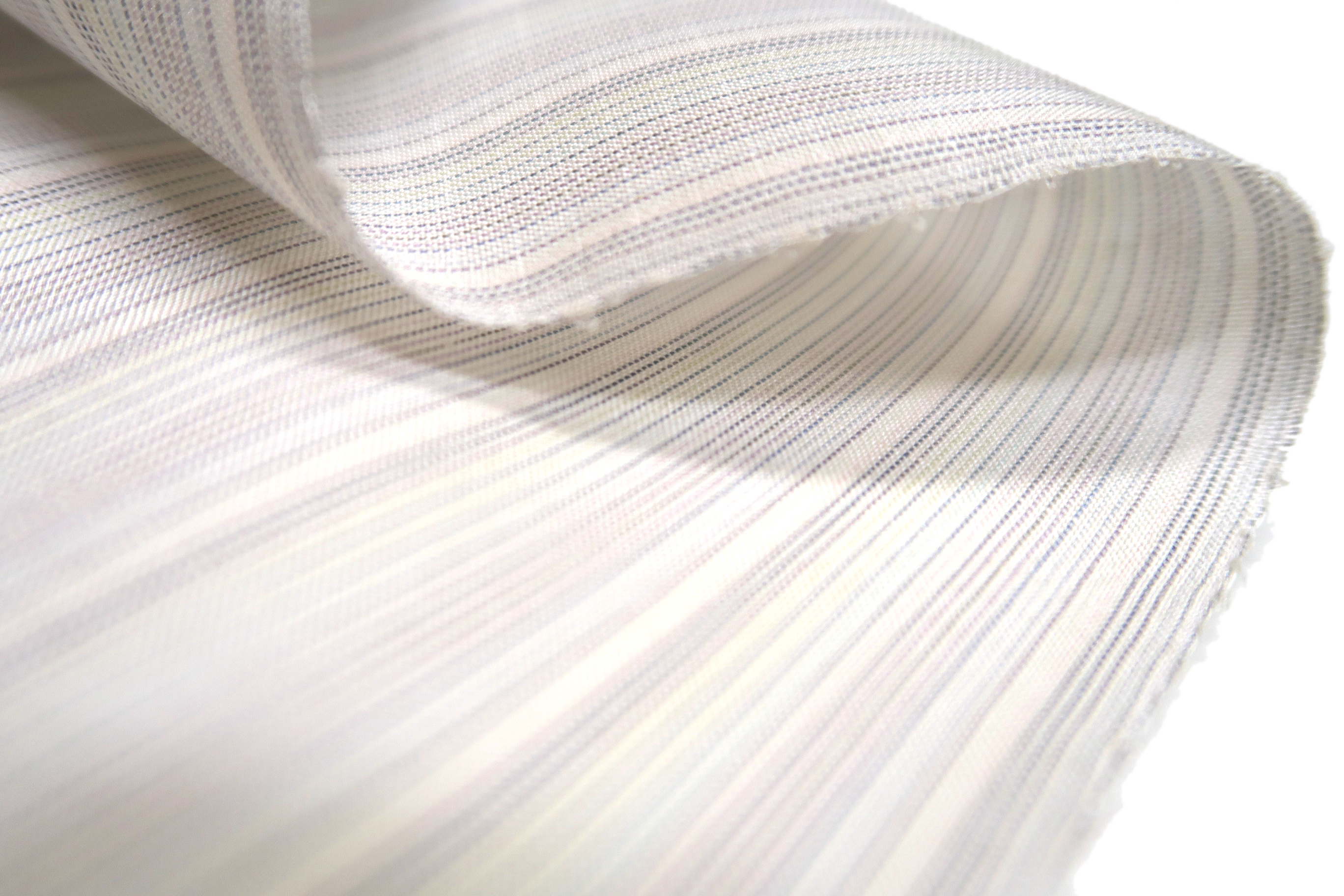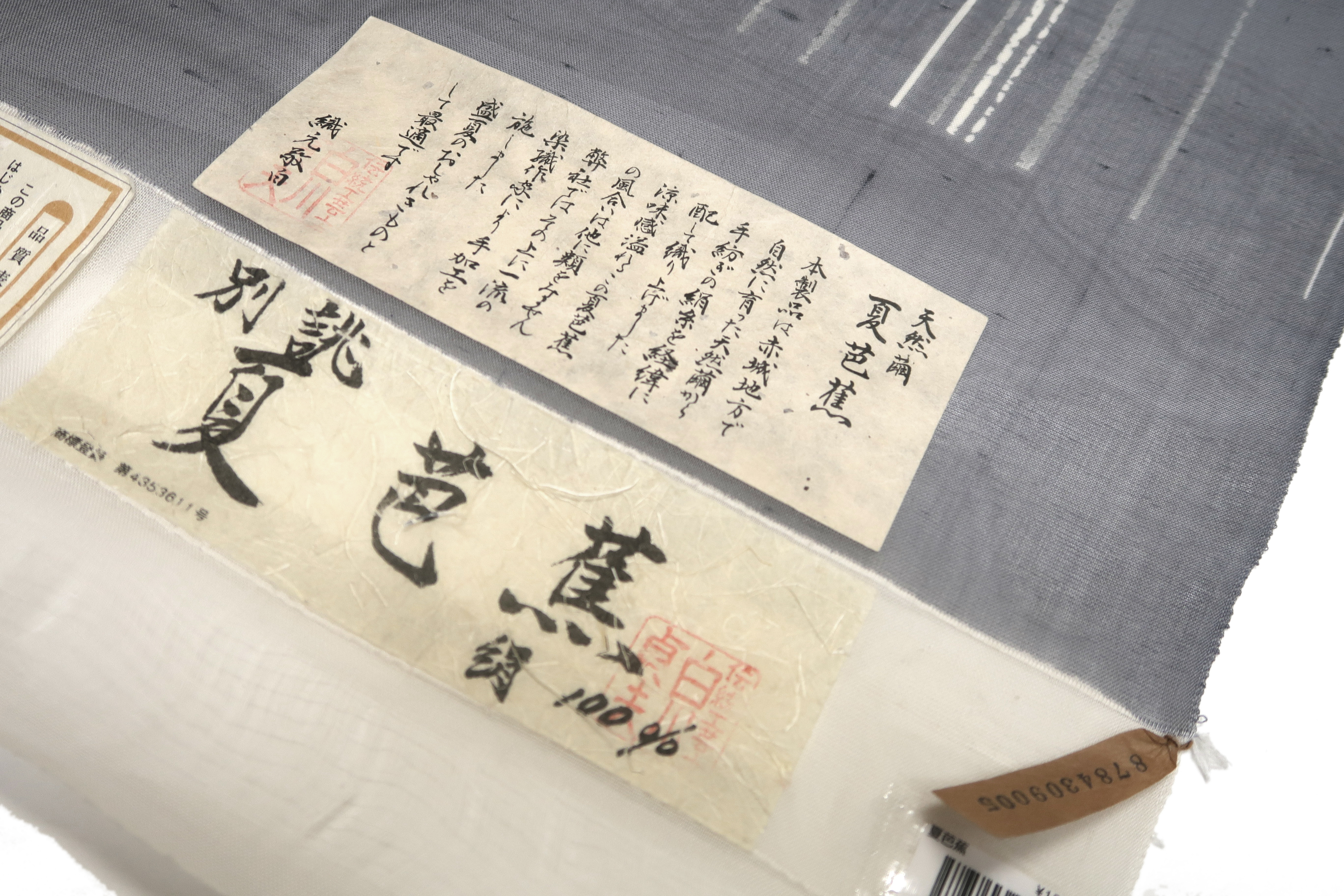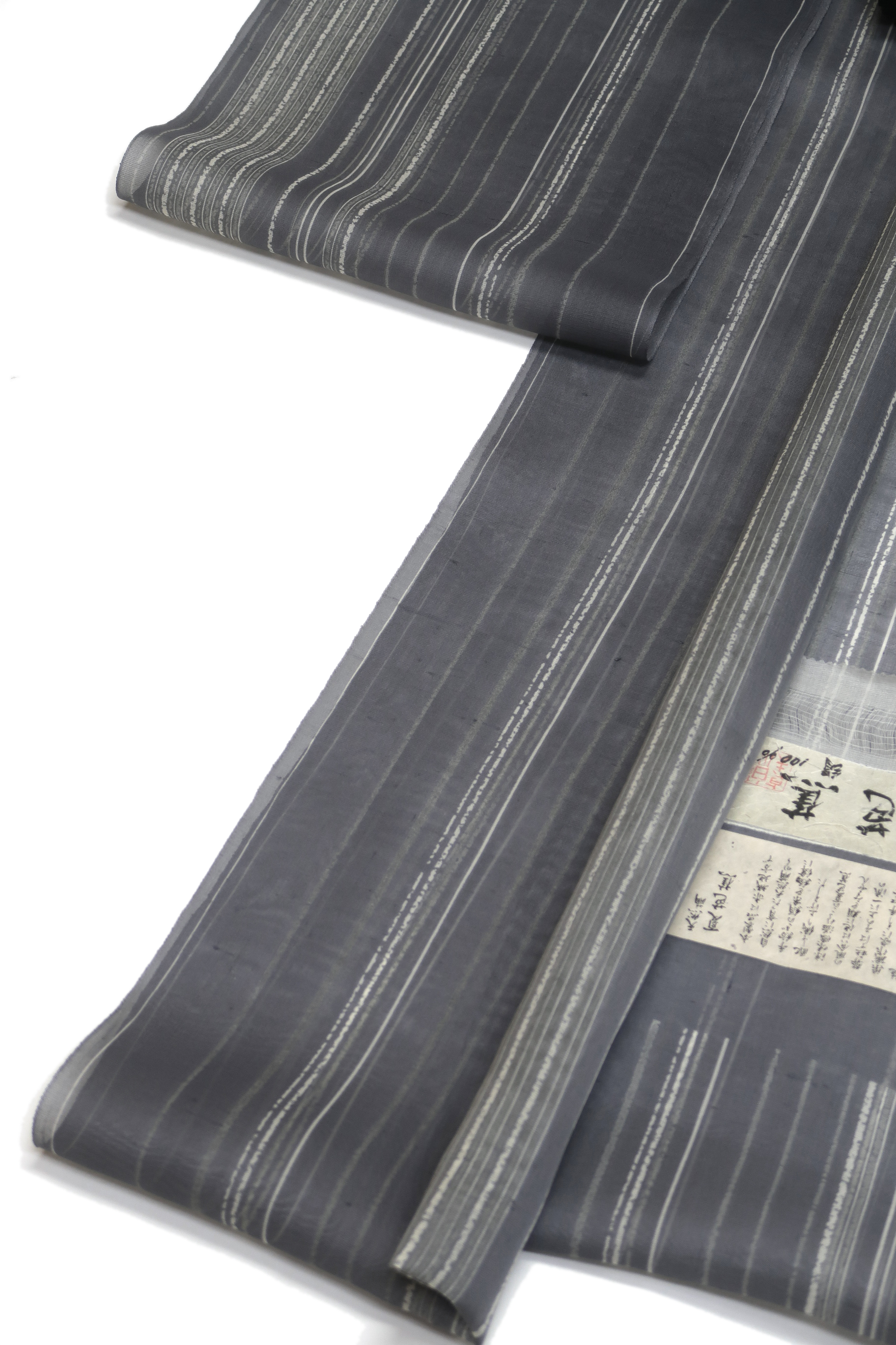 このきものは、経糸に色柄を染めた絣糸を使って織られた経双夏大島です。夏大島独特のお洒落な透け感と、軽くて、さばきの良い単衣のきものや夏のコートとしてご愛用いただけます。