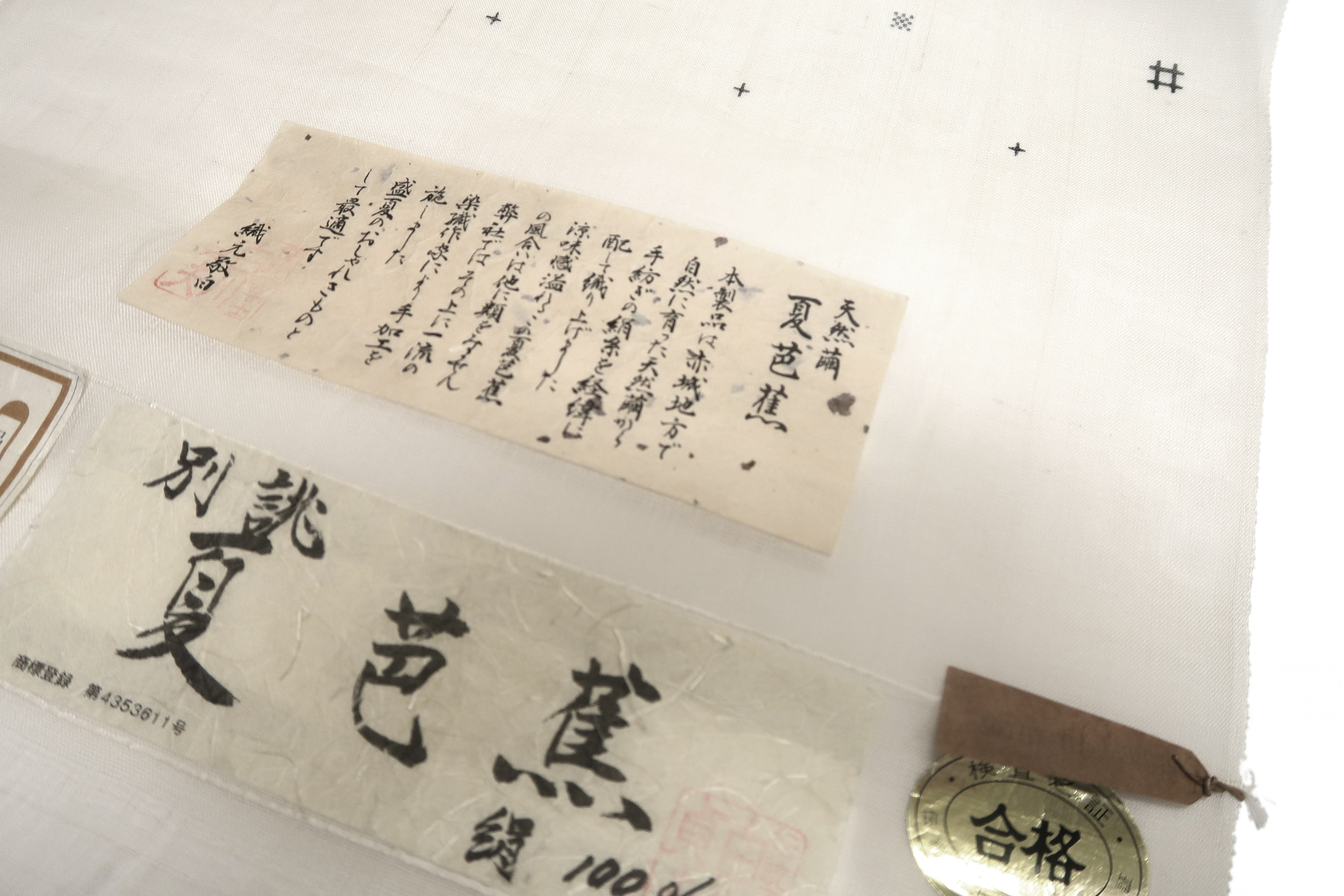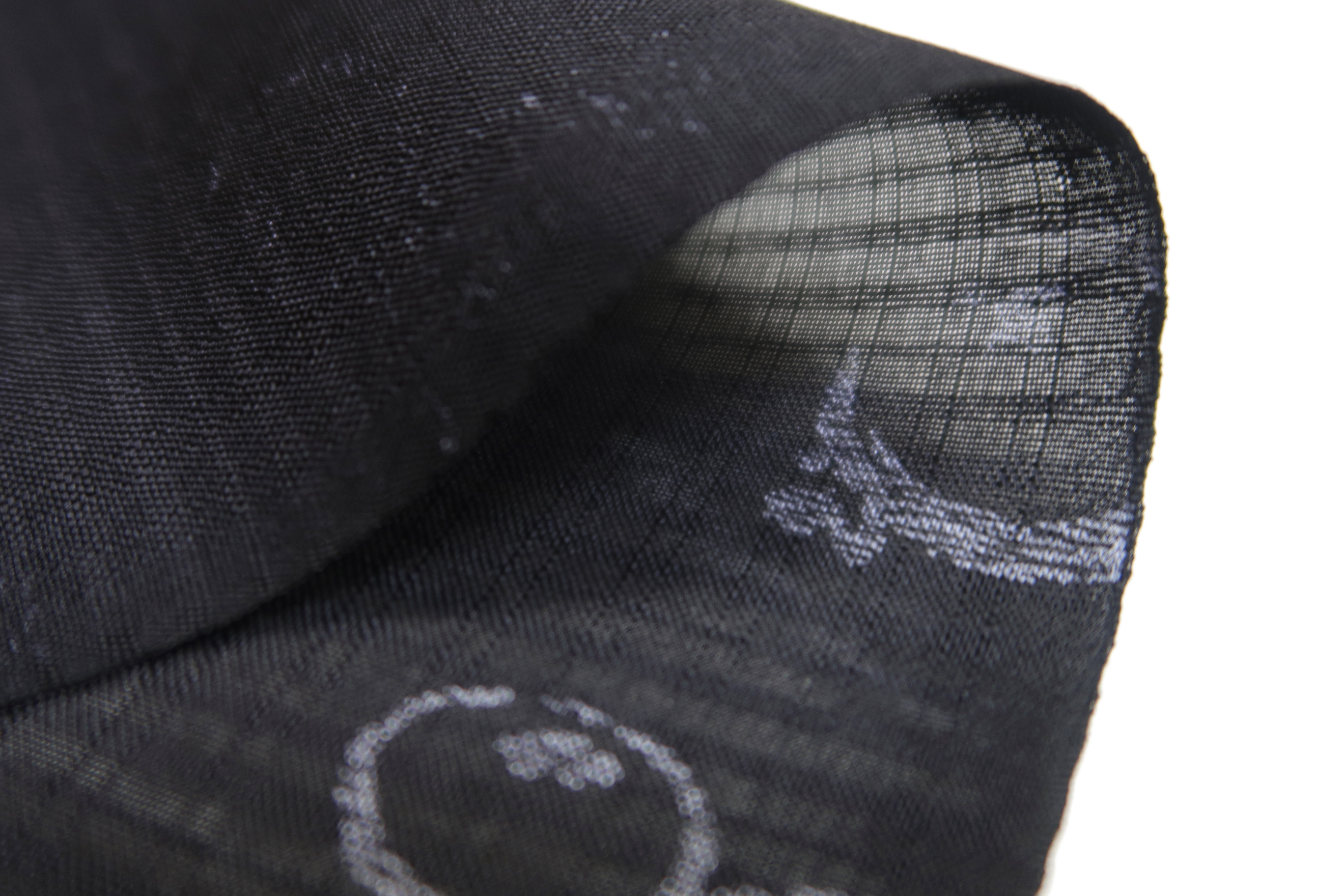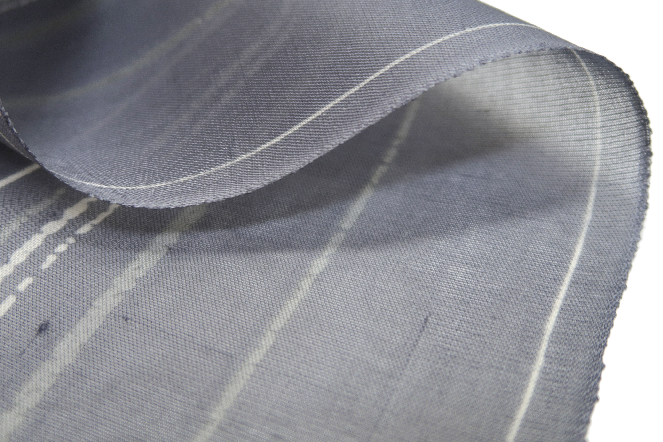 このきものは、経糸に色柄を染めた絣糸を使って織られた経双夏大島です。夏大島独特のお洒落な透け感と、軽くて、さばきの良い単衣のきものや夏のコートとしてご愛用いただけます。