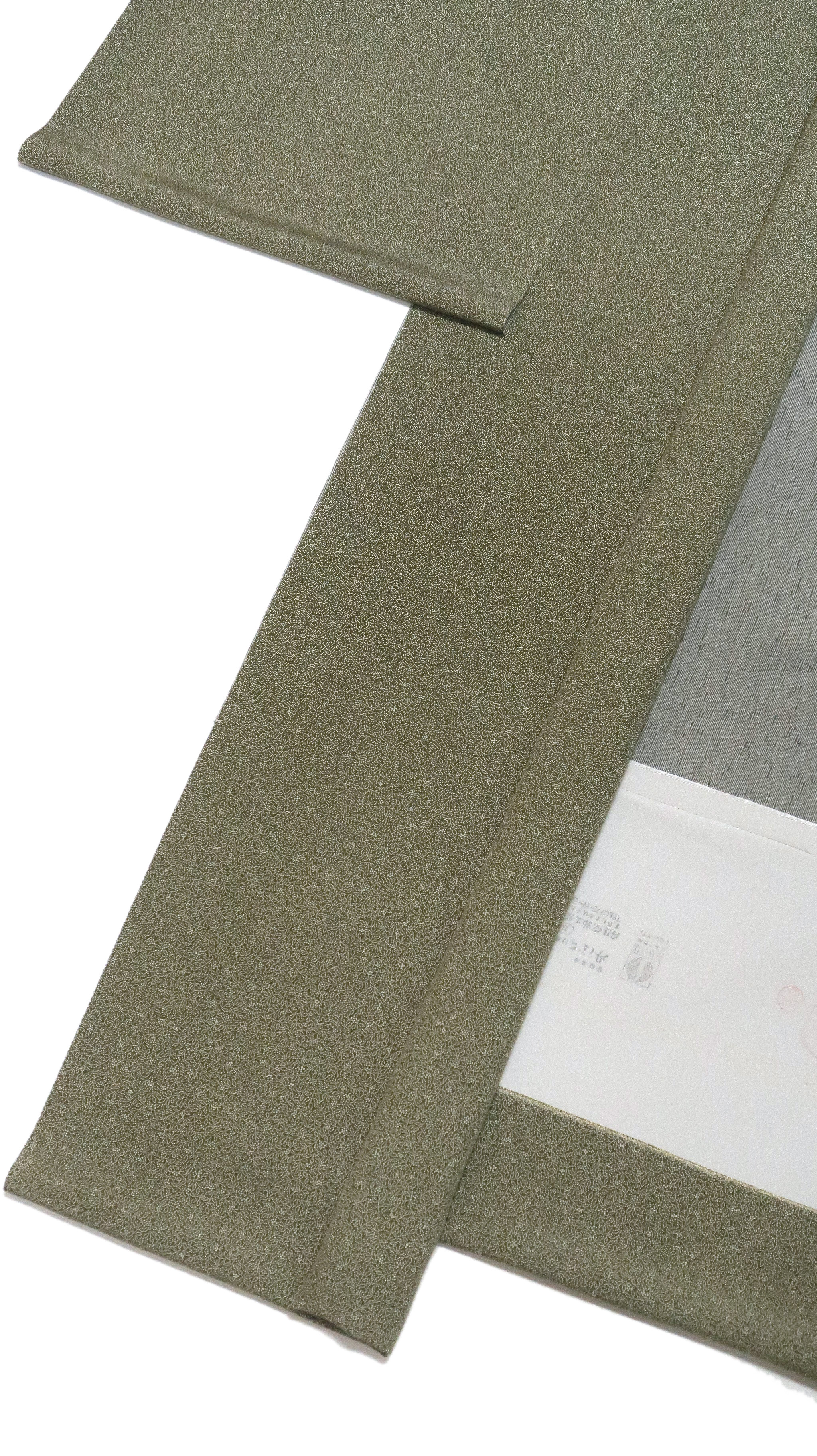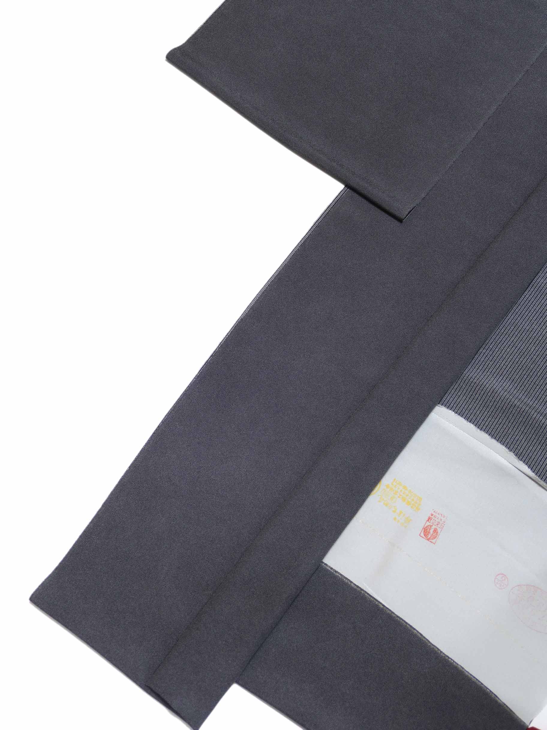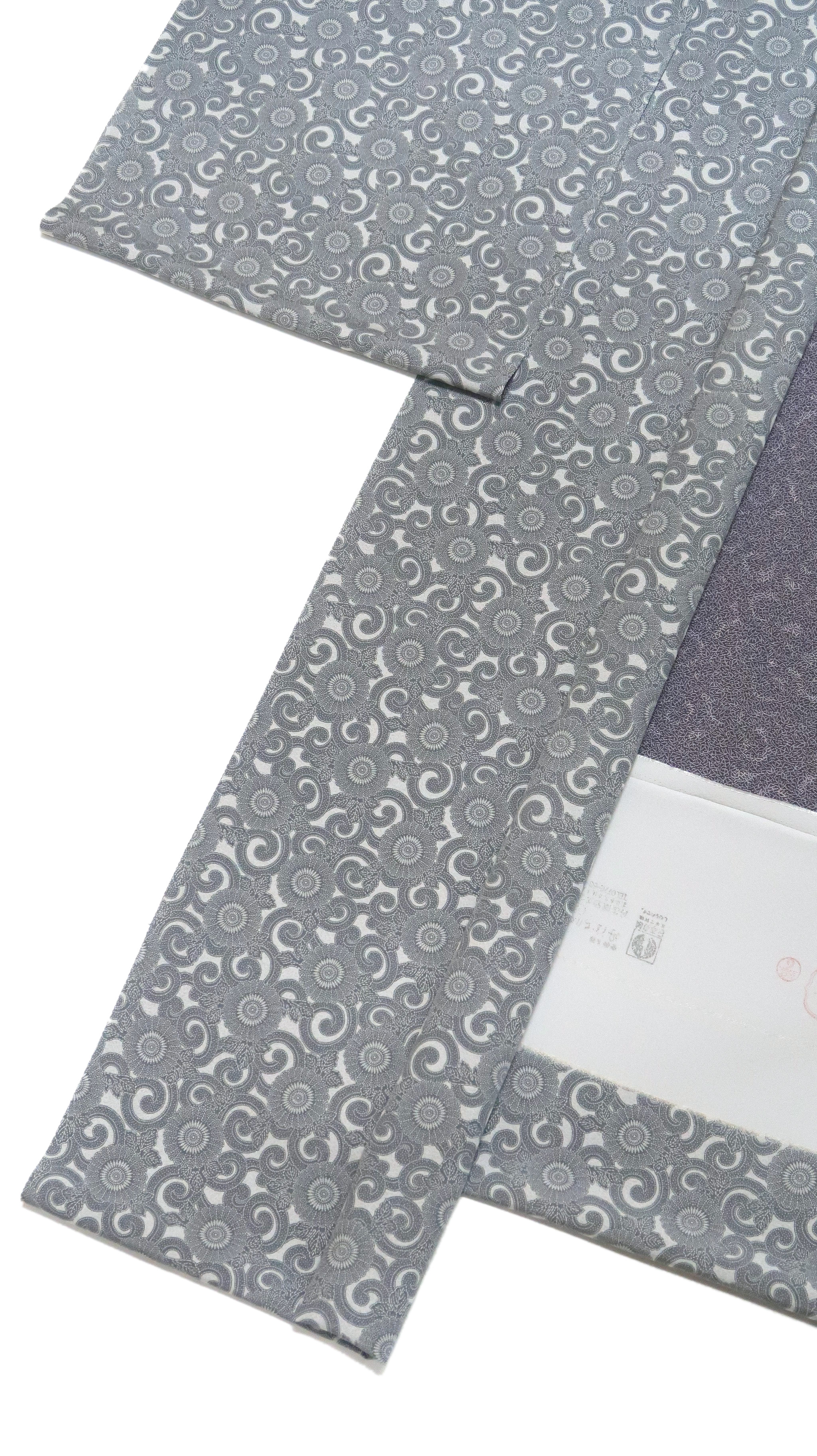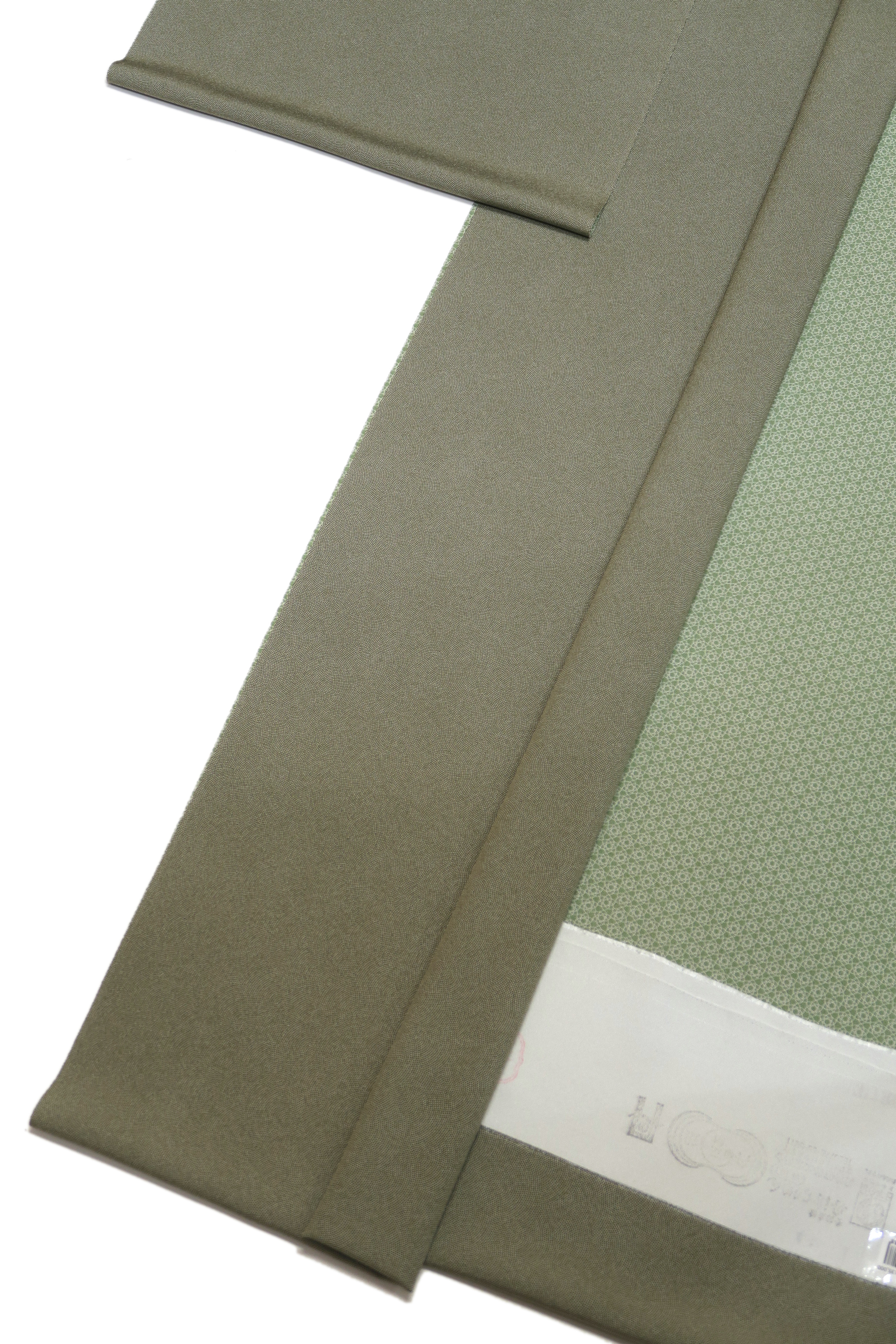 絹、綿、麻、化学繊維などの生地を染色して作られる着物、いわゆる「後染めの着物」は、表地のみを染める片面染めが主流ですが、裏地にも地色などを染める反物もあります。袷の着物なら裏地を付けて仕立てますので、裏面には色柄は必要ないと思われるかも知れません。しかし、実際には多くの江戸小紋などでも一色の無地などで裏面も染めてあります。それは、裏地を染めることによって表地の色柄に微妙な深みが出て、より鮮明な文様が表現できるからにほかなりません。武士の公服として発達した裃は、江戸時代後期には両面染めが現れます。袴の上着として着用した肩絹は、生地の裏側が見えるからだと思われます。つまり、肩絹には裏地は付けず単衣に仕立てますので、肩山を基点にした前側と後側になる表生地だけを染めたのでは、内側には色柄はなく、染める前の白い生地、もしくは無地の地色が見えることになるからです。特に表と同じ色柄の江戸小紋を染め上げる技術は難しく、表裏の柄がぴったり合わせなければなりません。それ以降、昭和初期まで同じ色柄で染める両面染めが少なからずありました(資料:染織辞典中江克己編)。その染色技法を現代に受け継ぎ再現したのが、この両面染めの江戸小紋です。生地の厚さ、わずか0.8~0.9mm程度の両面に色も柄も異なる図案が滲まず、干渉せず、見事に染め上げられました。