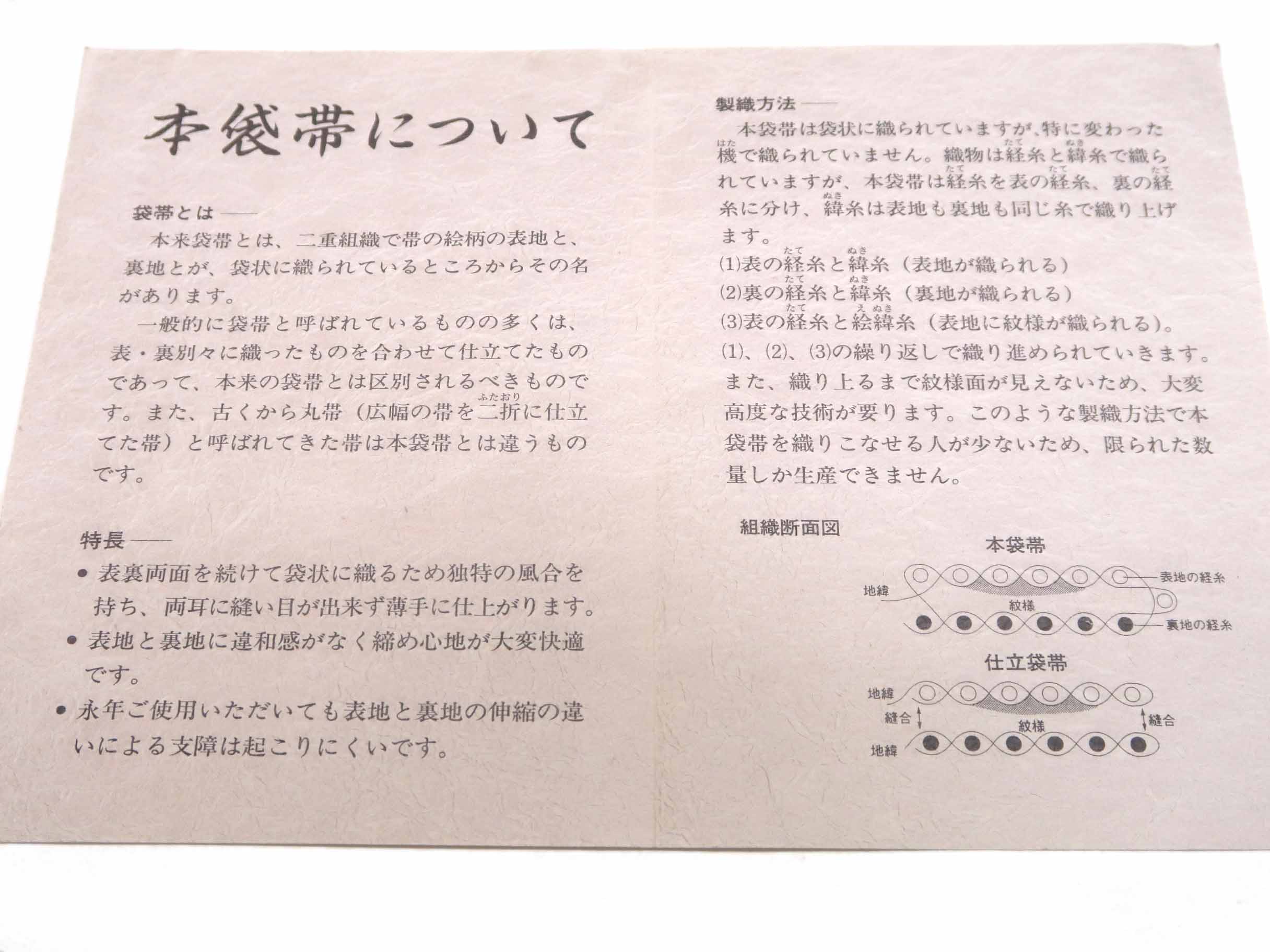 - 技法 : 西陣手織。本袋帯(ジュニア用)