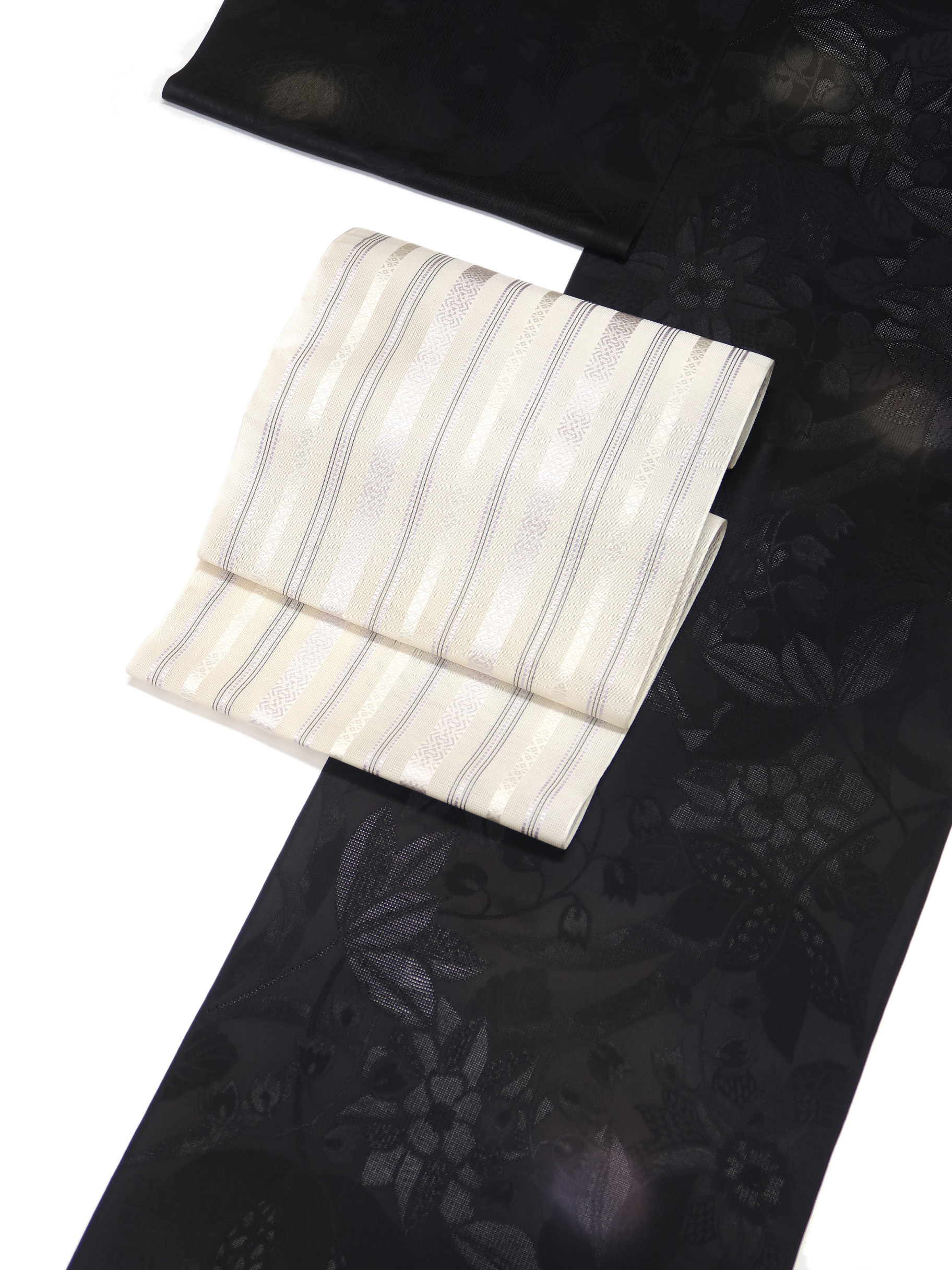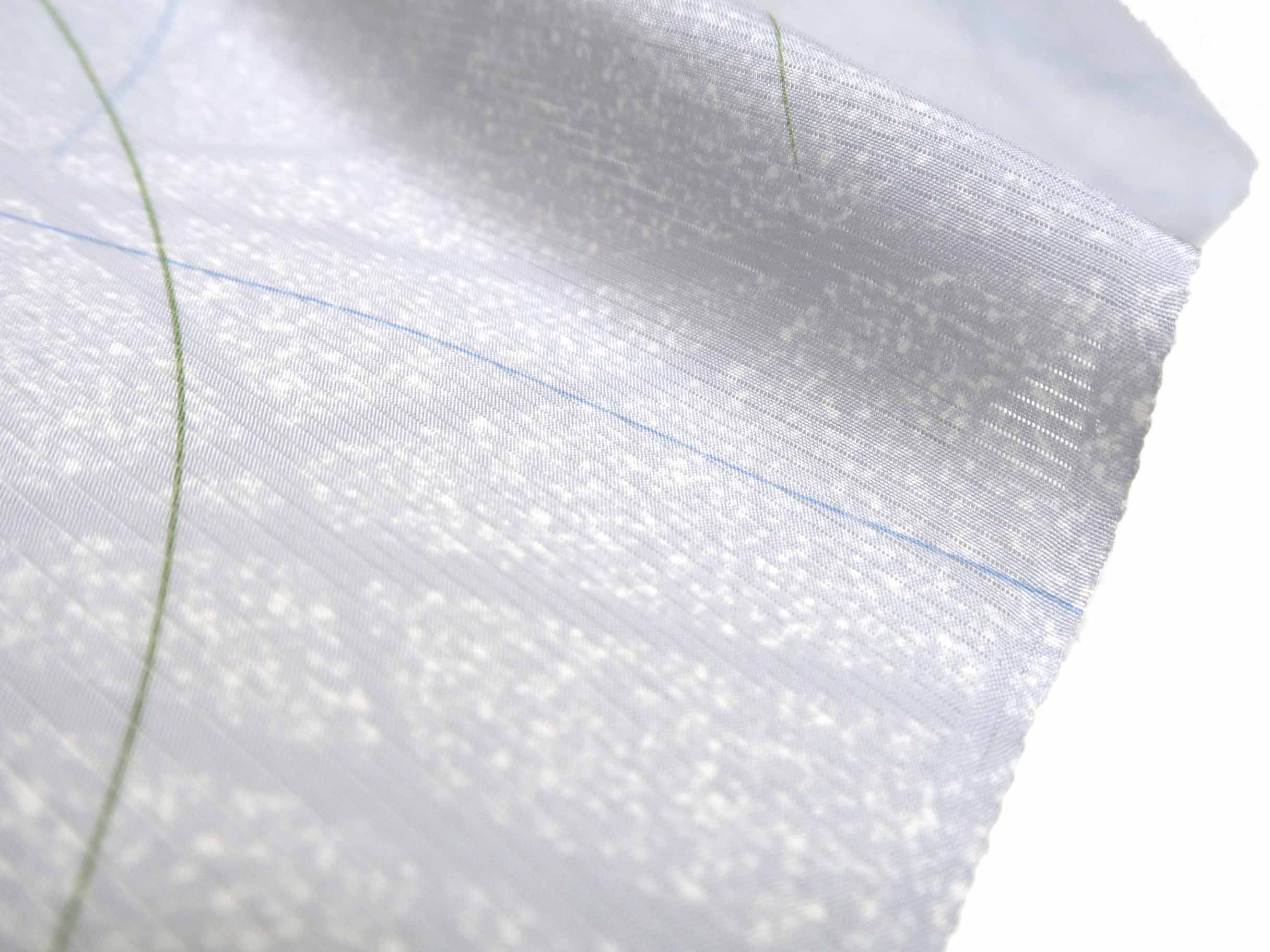 紗とは、搦み織、あるいは、捩り織といわれる布面に隙間のある織物。羅に次ぐ難しい織物ですが、すでに奈良時代には唐から伝来し正倉院裂として残されています。特に冷房のなかった時代には、暑い夏の衣服として重用されましたが、現代でも25℃を超えるような夏日には、正絹の紗に勝る生地はないように思います。何より軽くて動きやすく、通気性が良いので涼しいばかりか、汗ばむ時期には吸汗性と発汗性に優れ、冷房の効いた室内では一定の保温効果もあります。やはり、宙を舞う蝶の生命カプセル「繭の糸」以上の繊維は無いように思います。