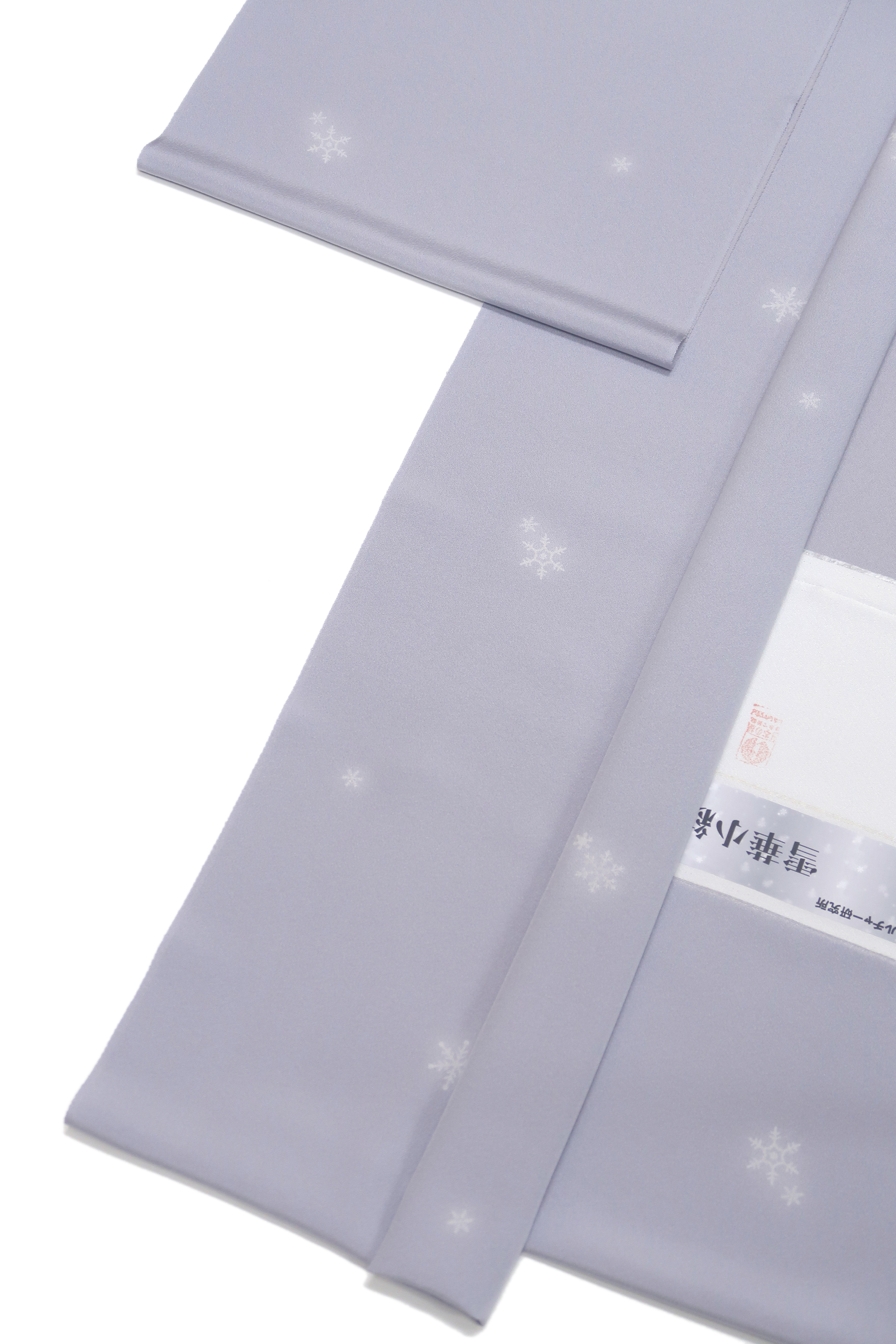 江戸小紋を代表する毛万に雪華を染め込みました。伝統的な藍鼠の色合いですので控えめながらも格調高い装いになるでしょう。