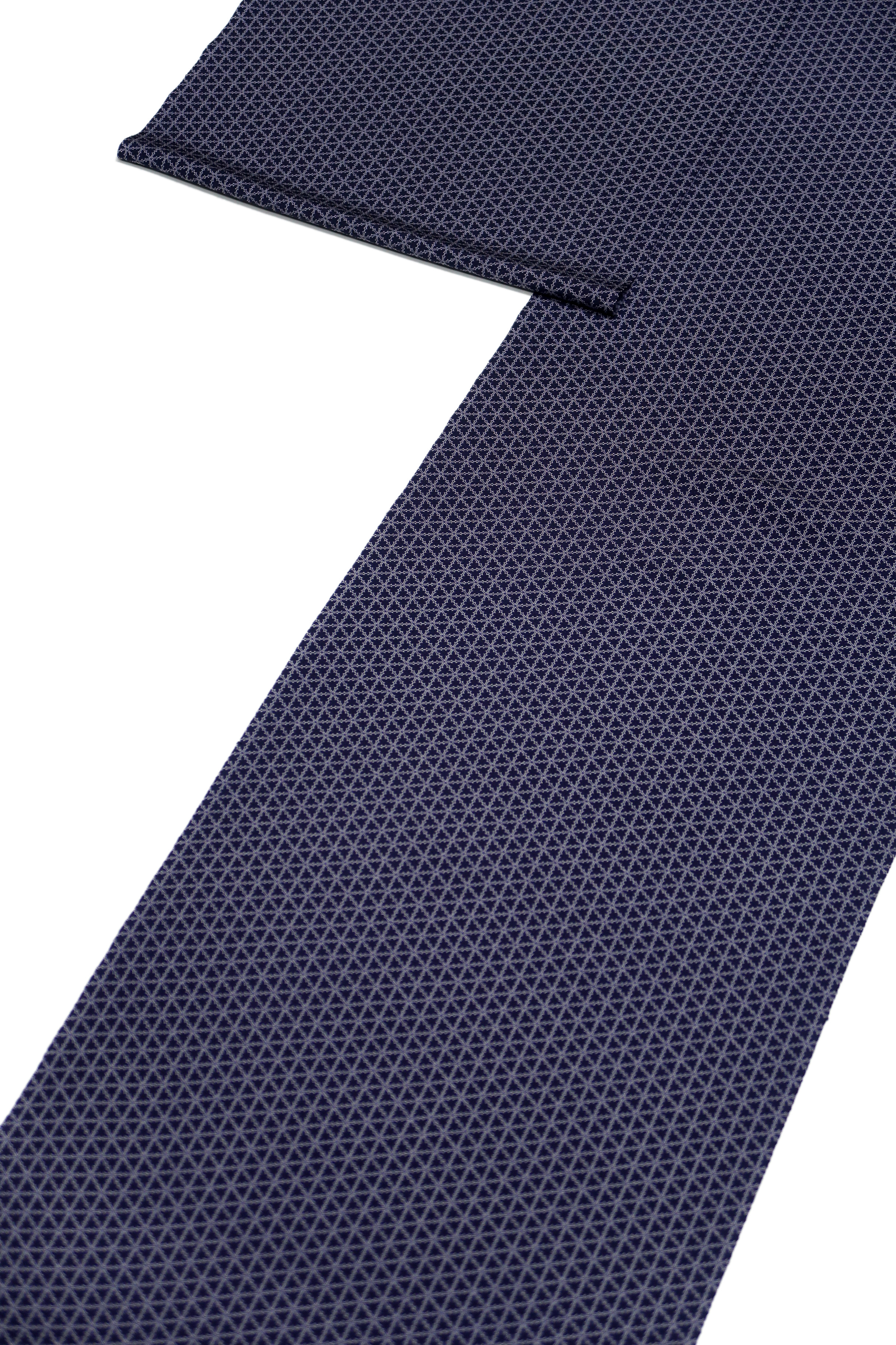 小紋は、歴史的には街着(まちぎ)として着られていました。つまり、普段着や作業着ではなく、儀式用の礼装に次ぐ外出用の晴れ着だったわけです。ですから今でも、小紋は準礼装の格式を保つものが数多くあり、袋帯や九寸名古屋帯を締めることができます。特に江戸小紋に限っては色無地と同格という位置づけです。もちろん、お洒落着として博多織などの八寸名古屋帯を締めれば、よりお洒落感(遊び心)が高まります。