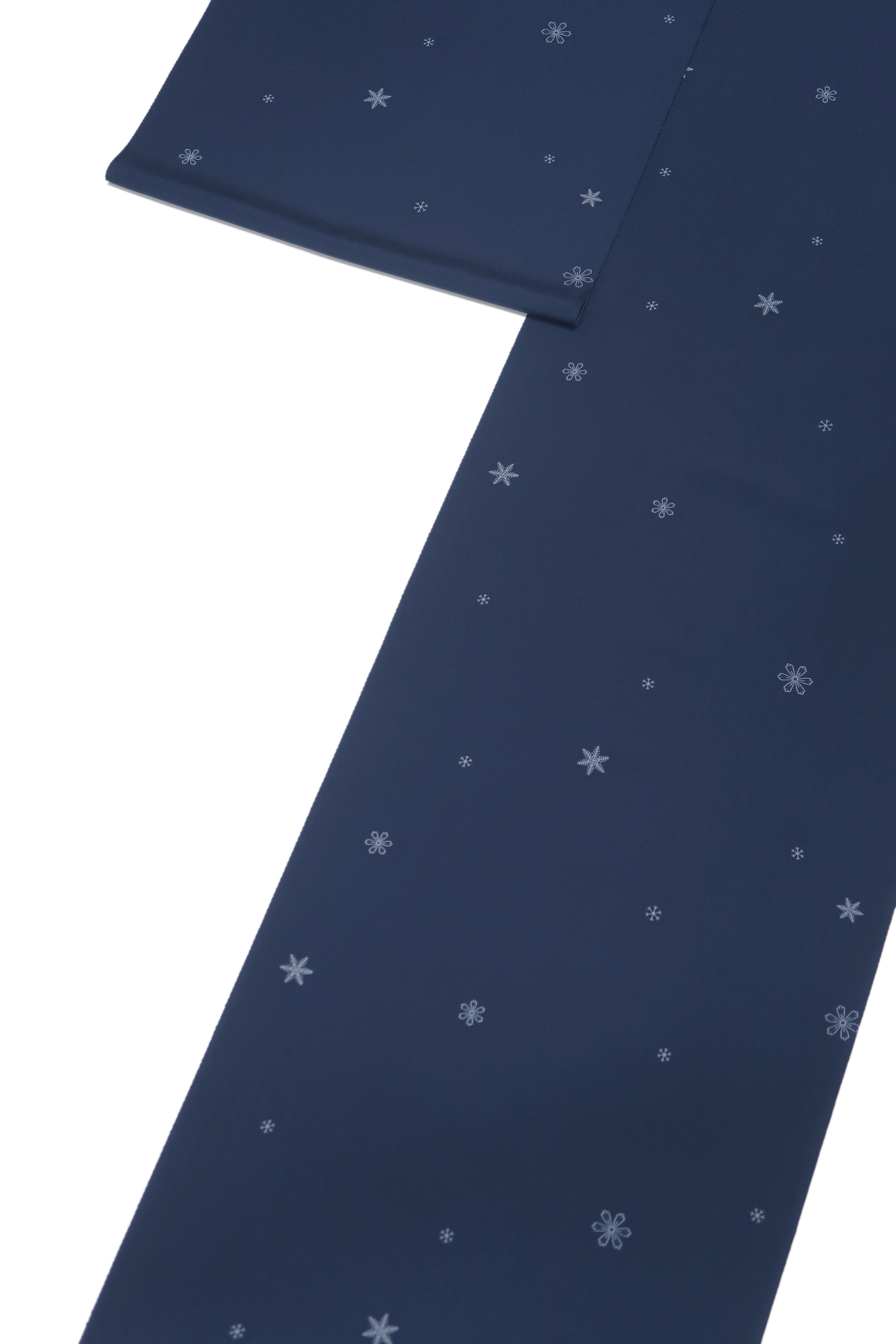 行儀小紋のような花菱文様に舞い散る雪華を染め込み、格調ある中に少々お洒落を楽しみました。