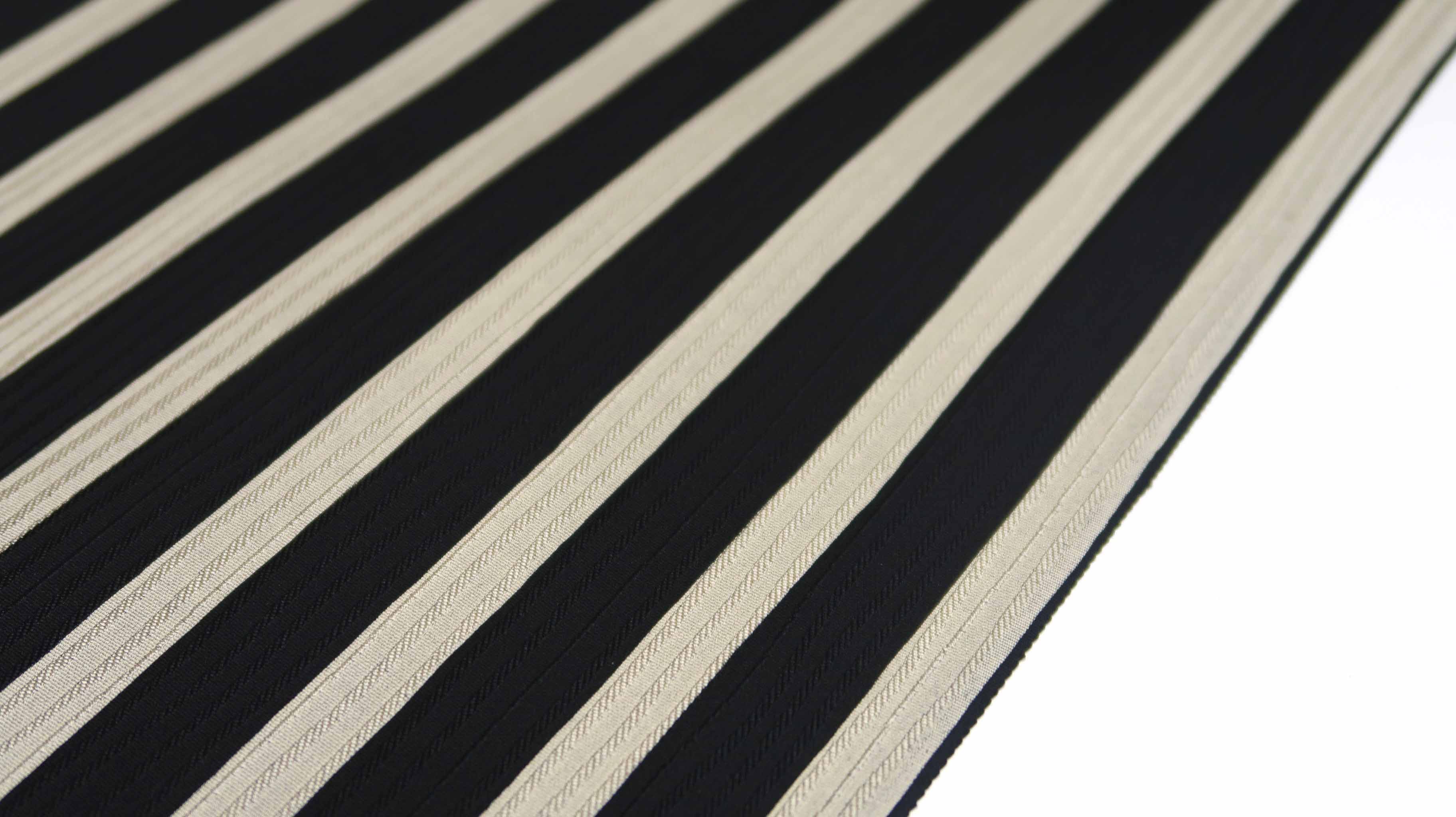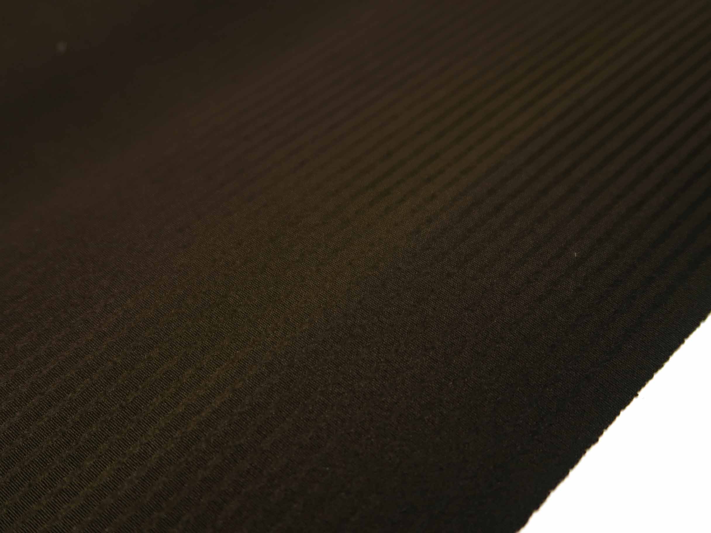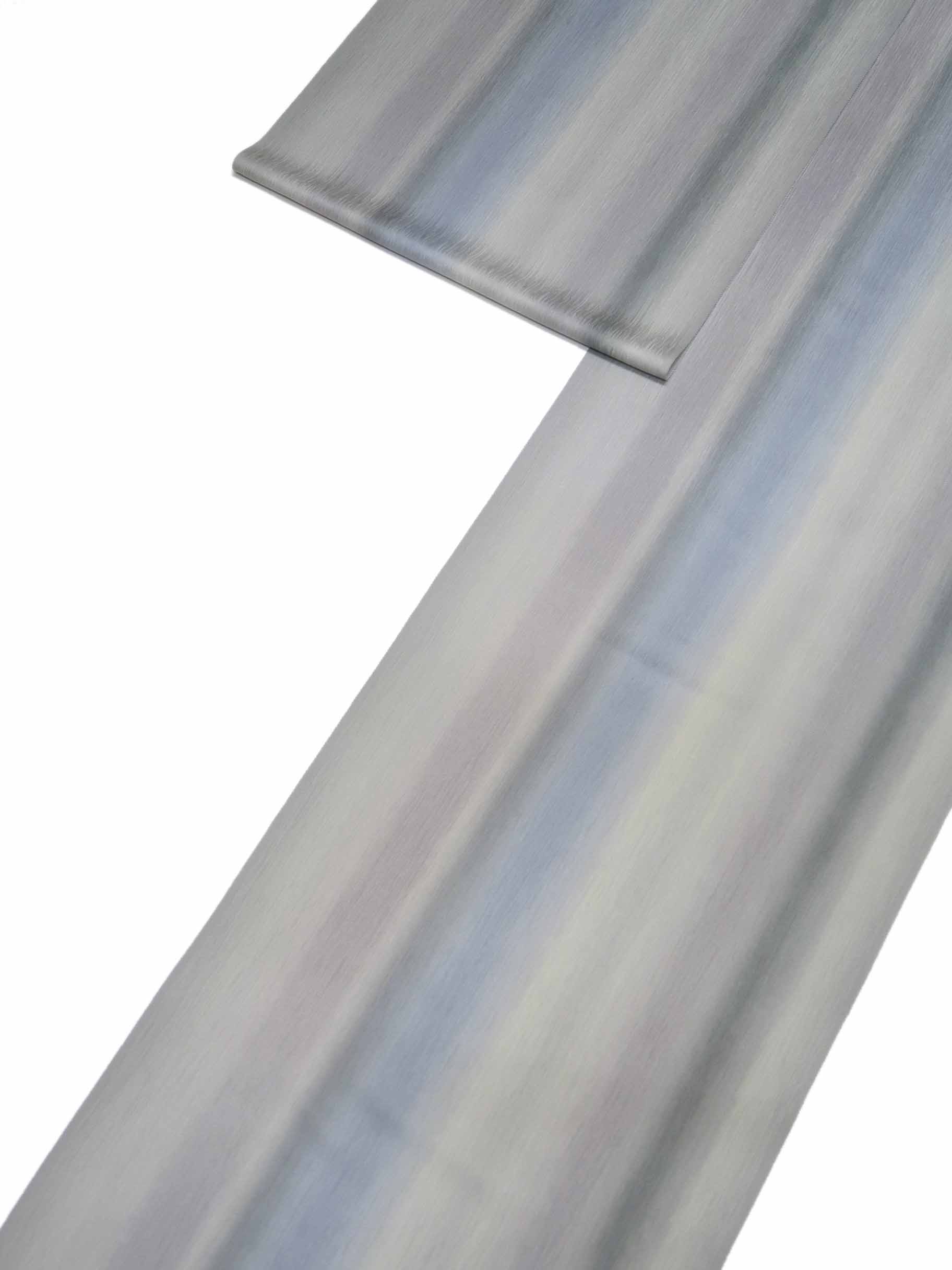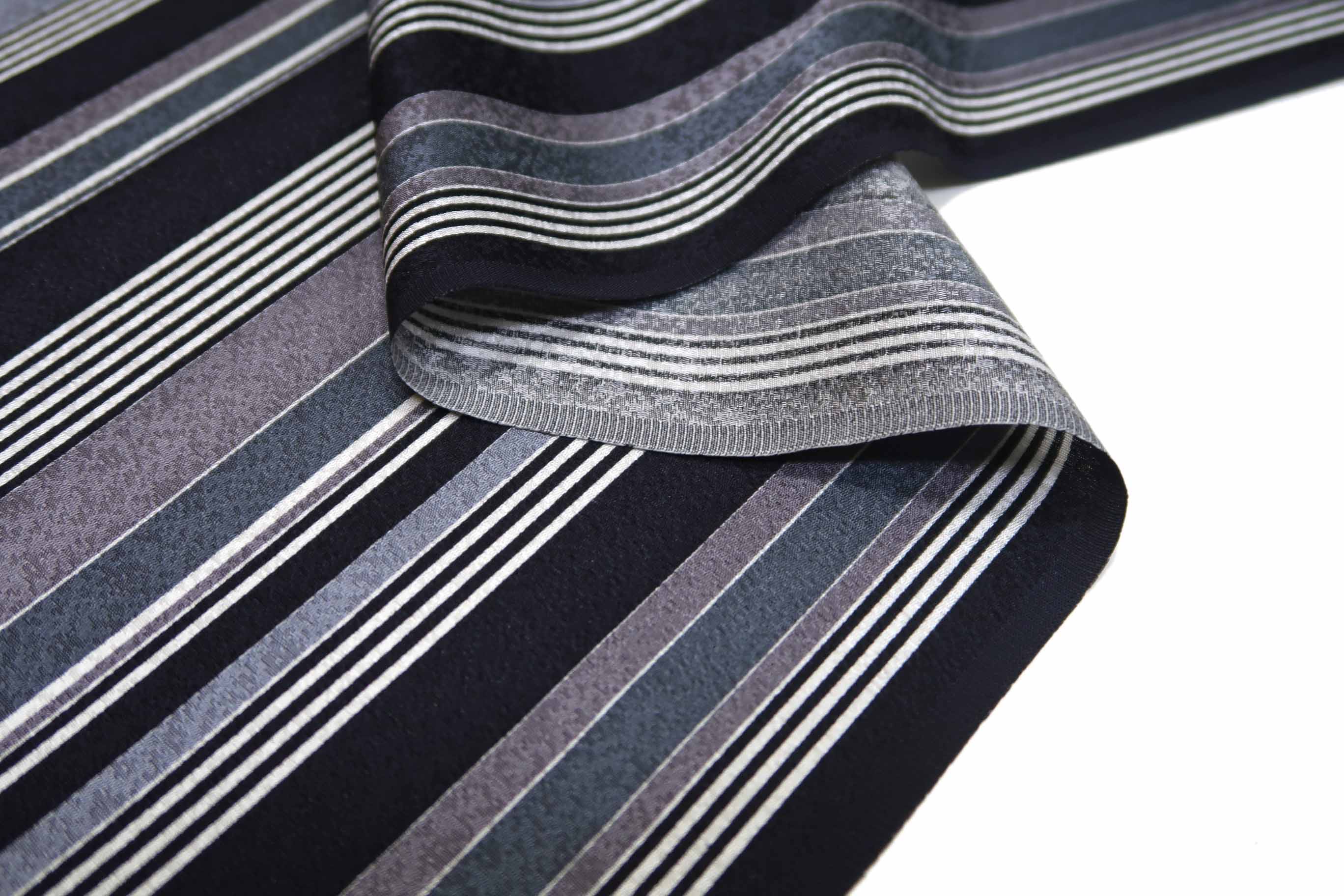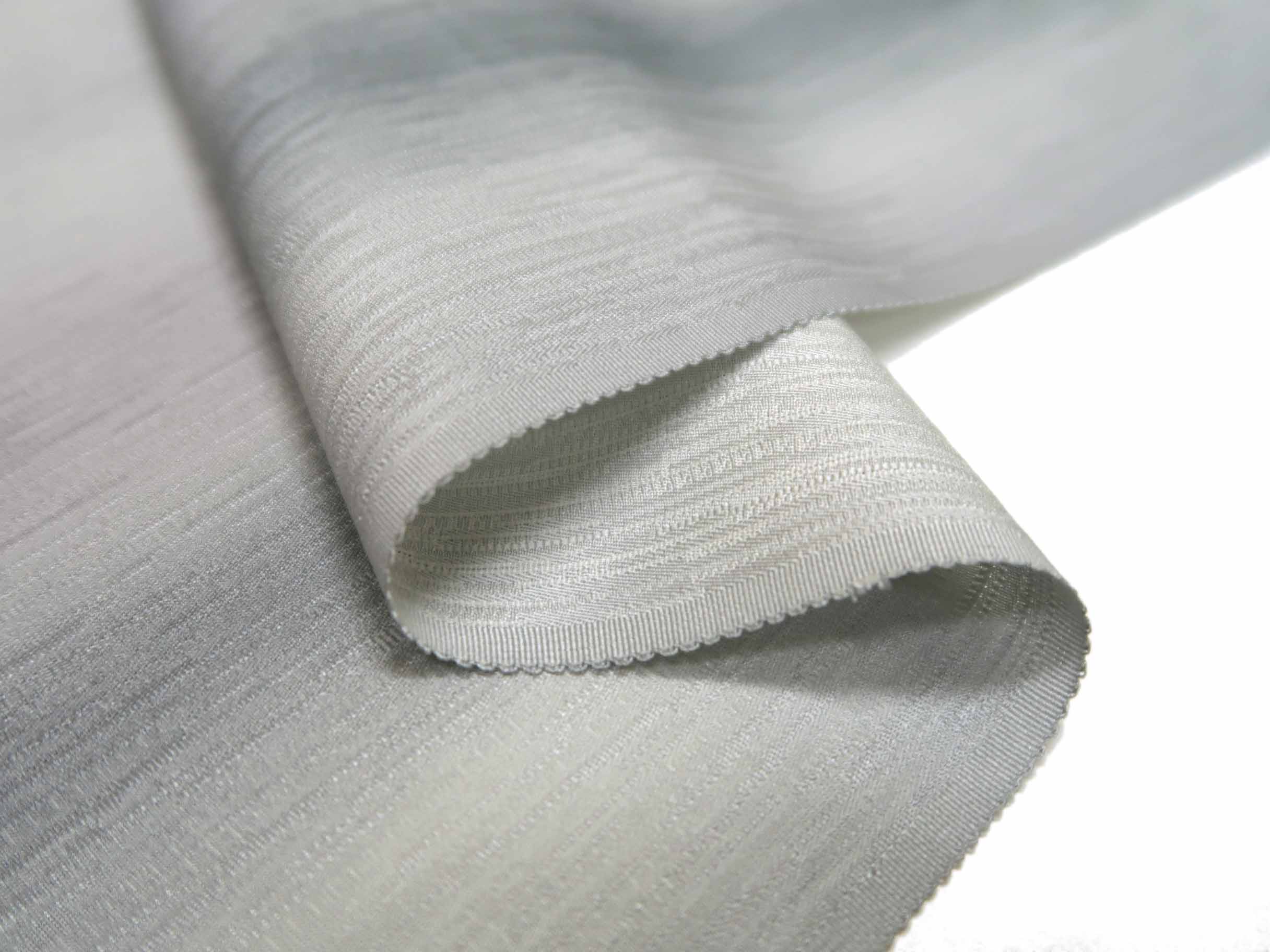 特殊な地紋を織り込んだ高級紋意匠縮緬に、暈し縞だけで染め上げました。微妙なグラデーションは、伝統的な職人芸ならではの作品です。帯次第で、粋にも上品にも、また、洒落っぽくもなるでしょう。