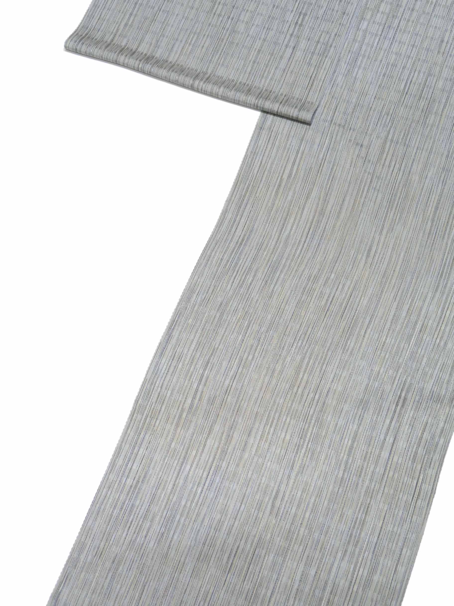 着尺とは、羽尺に対する言葉で、きもの用の長着、長羽織、ロングコートに仕立てることができるほどの長尺があることを意味しています。従って、この着尺は、長着、長羽織、ロングコートにして着られます。長着にする場合、お洒落用の白の袋帯を合わせてみましたが、八寸名古屋帯でも九寸名古屋帯でも無難に合わせることができるでしょう。羽織にすれば、紬や小紋、色無地やお召しにも良く合います。
