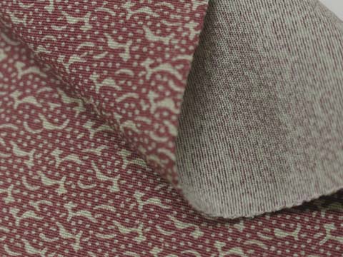 立涌は、水蒸気や雲が立ち上る様子を図案化した柄。相対する二本の線の中央がふくれ、両端がすぼった線文様で、有職文様のひとつです。そのことから運気上昇や吉祥という意味を持つ縁起の良い柄とされ、平安時代には公家など高貴な人々に用いられていました。ピリッと厳しい雰囲気の縞とは違い、緩やかなカーブが渋いながらも柔和で優しい印象を与えます。
