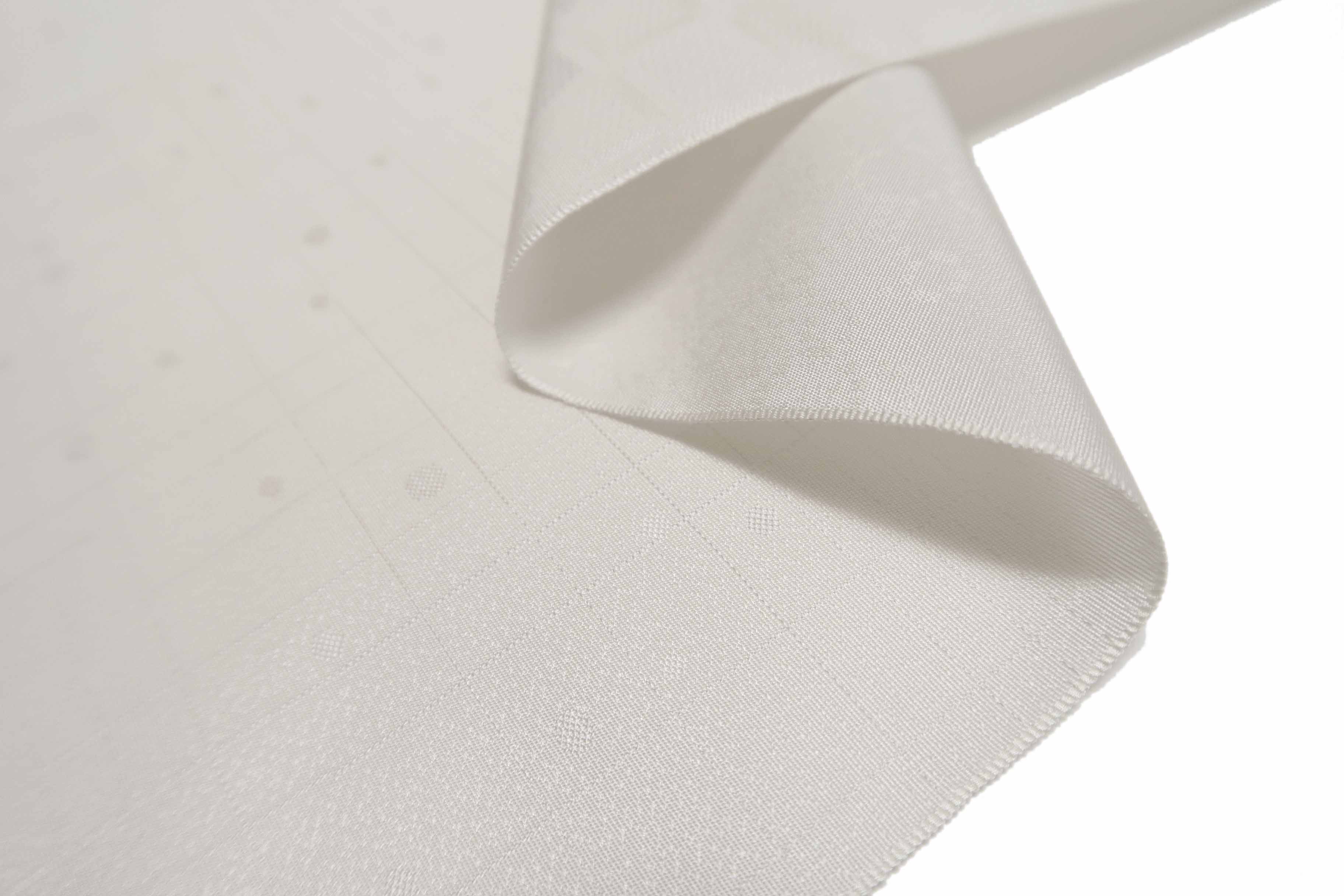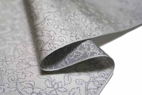 本来は裏地(うらじ)を付けて袷(あわせ)に仕立てますが、最近の暖かい春秋では単衣(ひとえ)で過ごすことが多くなりました。ここでは、西陣織(にしじんおり)の準礼装(じゅんれいそう)用名古屋帯(なごやおび)、紋紗(もんしゃ)の単衣(ひとえ)羽織(はおり)を合わせてみました。