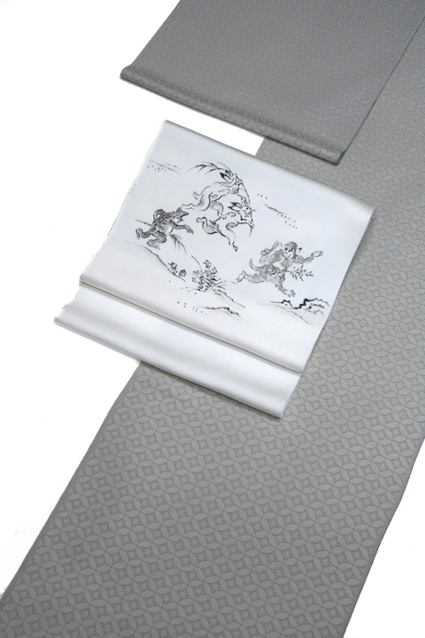 鳥獣人物戯画は、京都市右京区の高山寺に伝わる紙本墨画の絵巻物。国宝。鳥獣戯画とも呼ばれる。現在の構成は、甲・乙・丙・丁と呼ばれる全4巻からなる。内容は当時の世相を反映して動物や人物を戯画的に描いたもので、鳴呼絵に始まる戯画の集大成といえる。特にウサギ・カエル・サルなどが擬人化して描かれた甲巻が非常に有名である。一部の場面には現在の漫画に用いられている効果に類似した手法が見られることもあって、「日本最古の漫画」とも称される。(資料:Wikipedia)