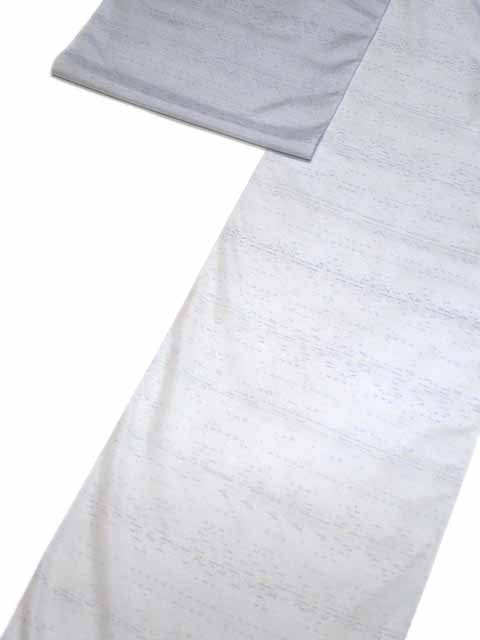 モダンな夏の白大島です。長着で着るときには、紗か羅の帯、あるいは、半幅帯でも楽しめます。大島は、滑りが良いので、しばしば夏用きもの衿雨コートにも仕立てられます。