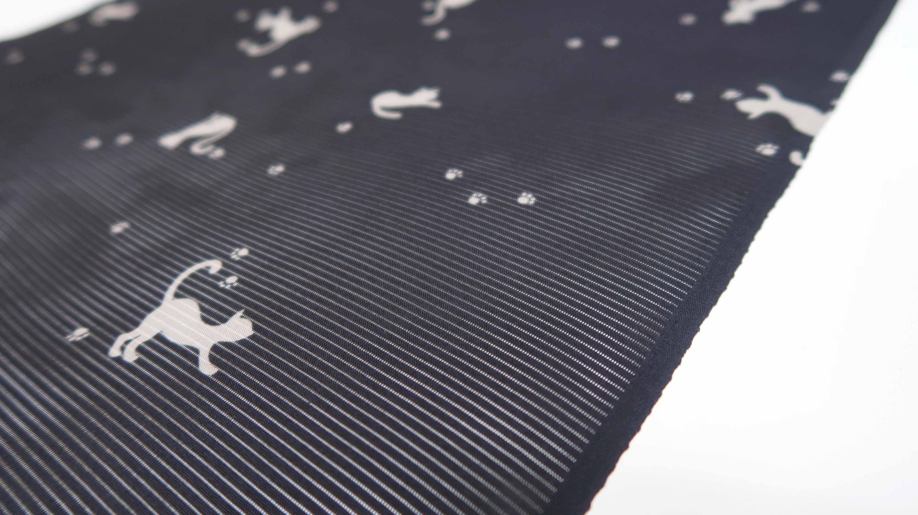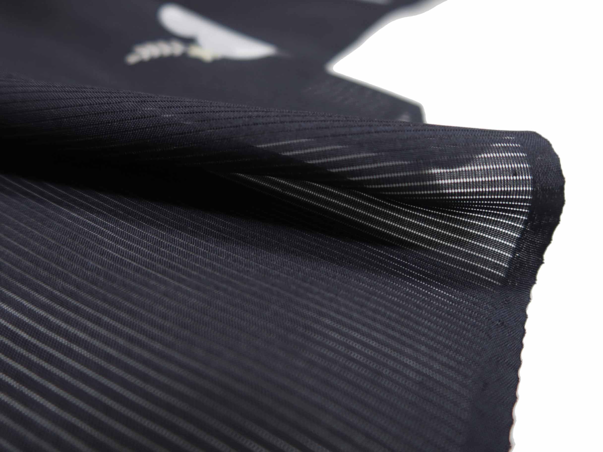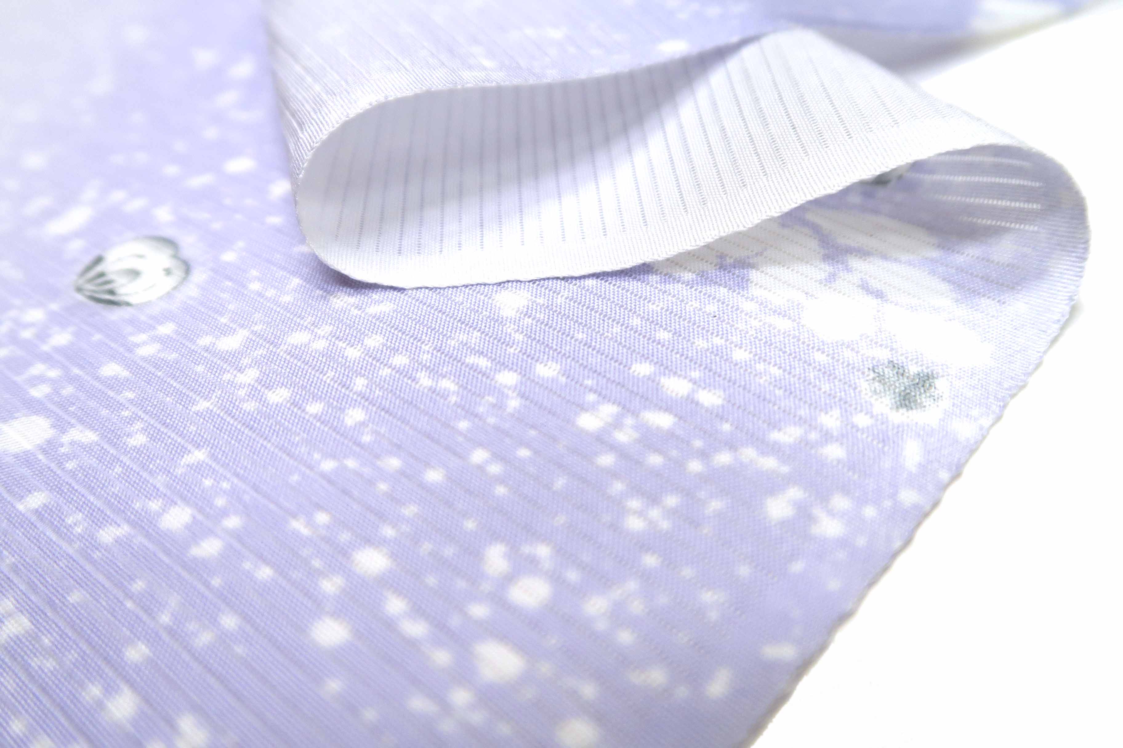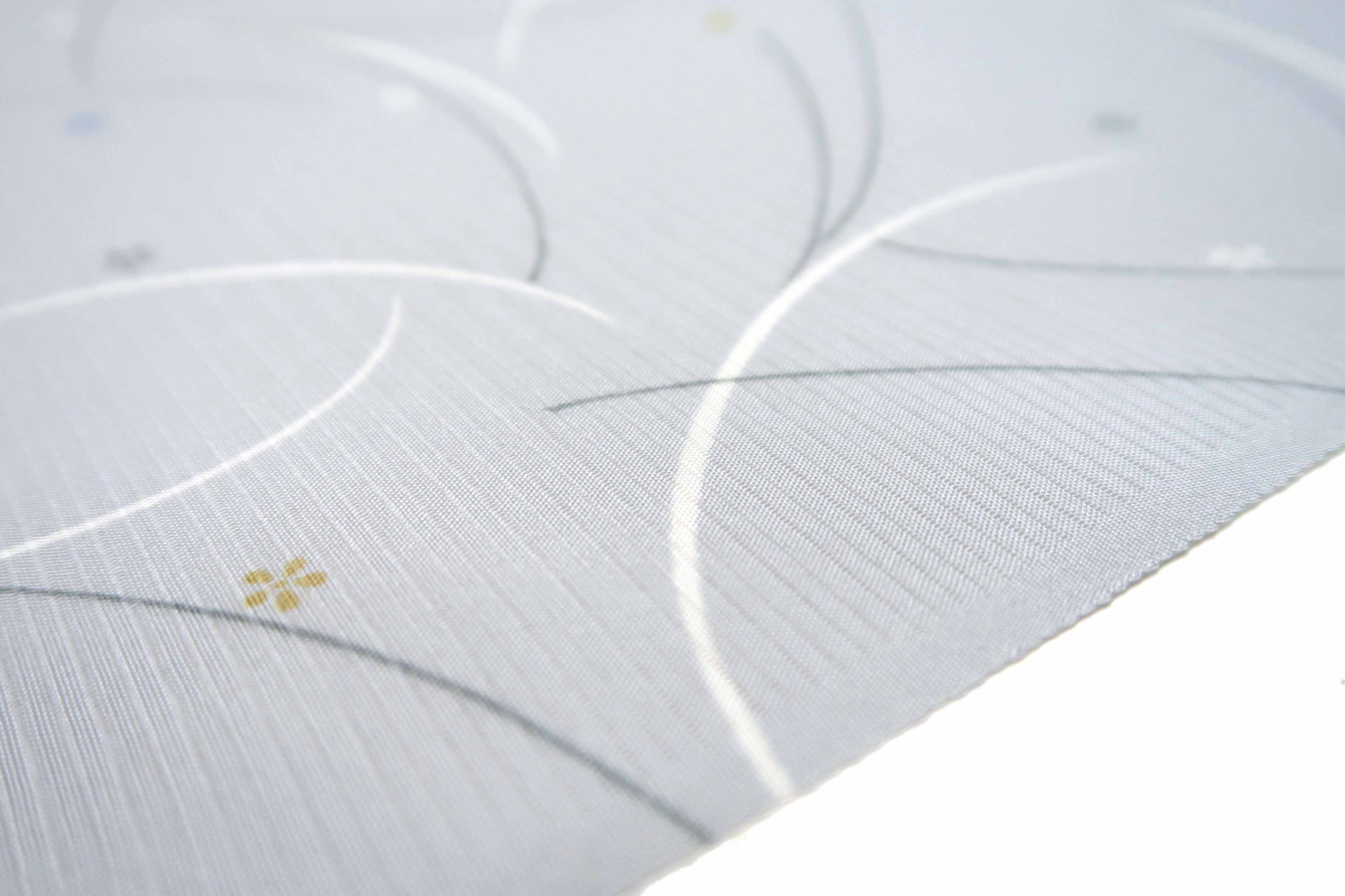 紗とは、搦み織、あるいは、捩り織といわれる布面に隙間のある織物。羅に次ぐ難しい織物ですが、すでに奈良時代には唐から伝来し正倉院裂として残されています。特に冷房のなかった時代には、暑い夏の衣服として重用されましたが、現代でも25℃を超えるような夏日には、正絹の紗に勝る生地はないように思います。何より軽くて動きやすく、通気性が良いので涼しいばかりか、汗ばむ時期には吸汗性と発汗性に優れ、冷房の効いた室内では一定の保温効果もあります。やはり、宙を舞う蝶の生命カプセル「繭の糸」以上の繊維は無いように思います。