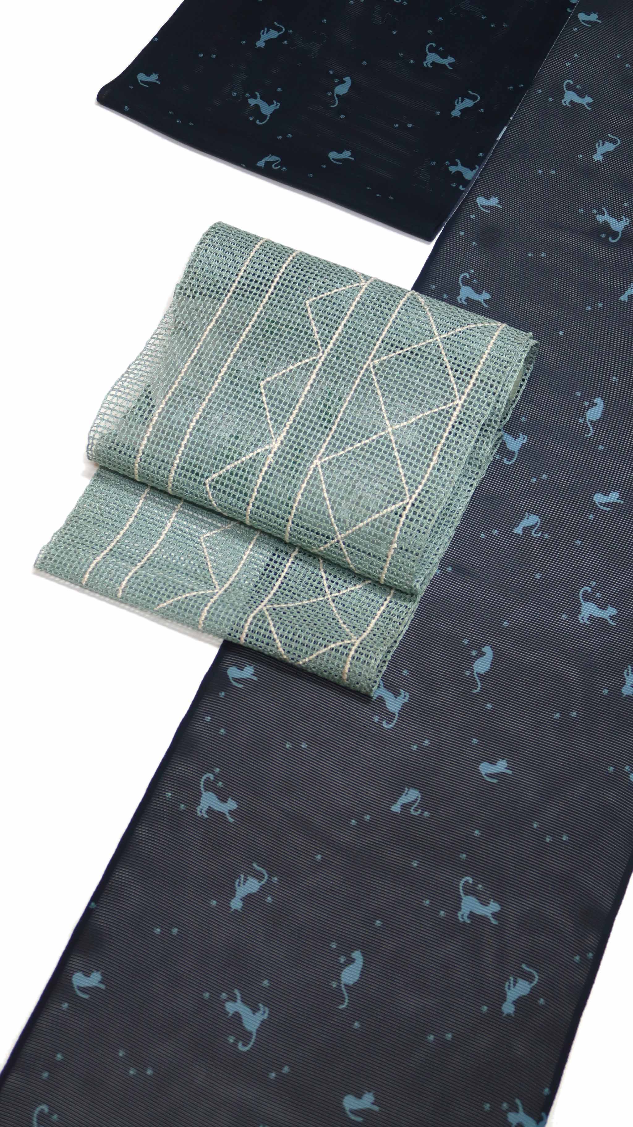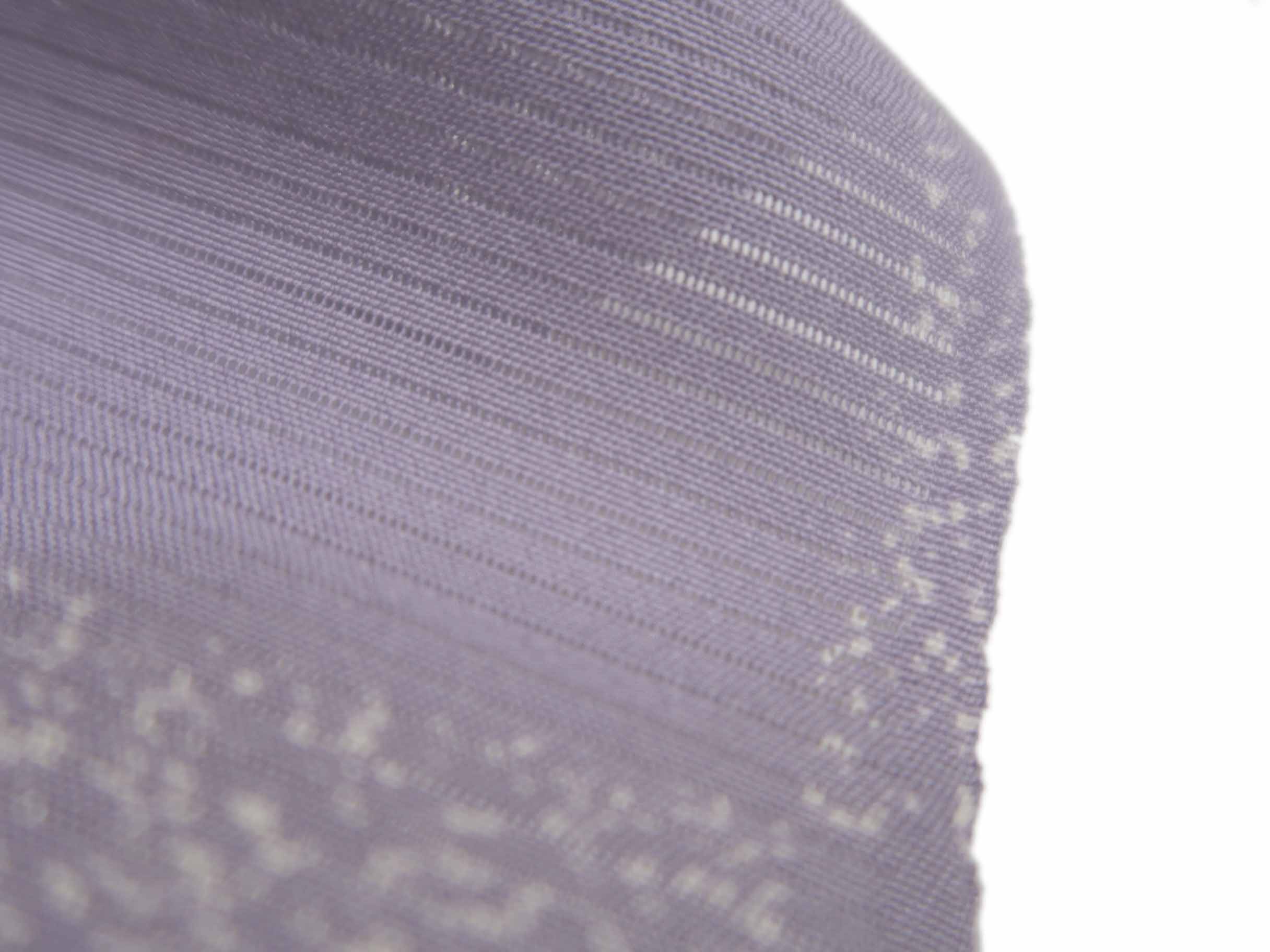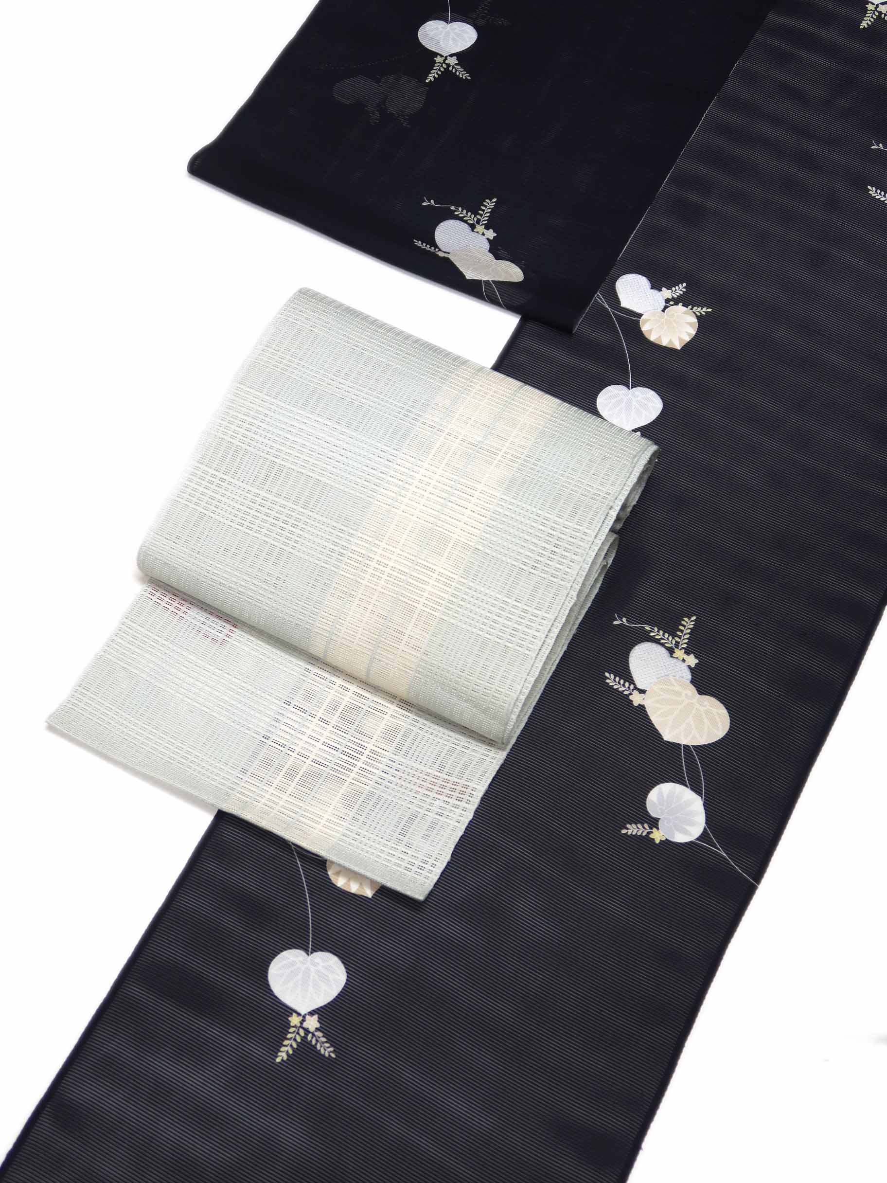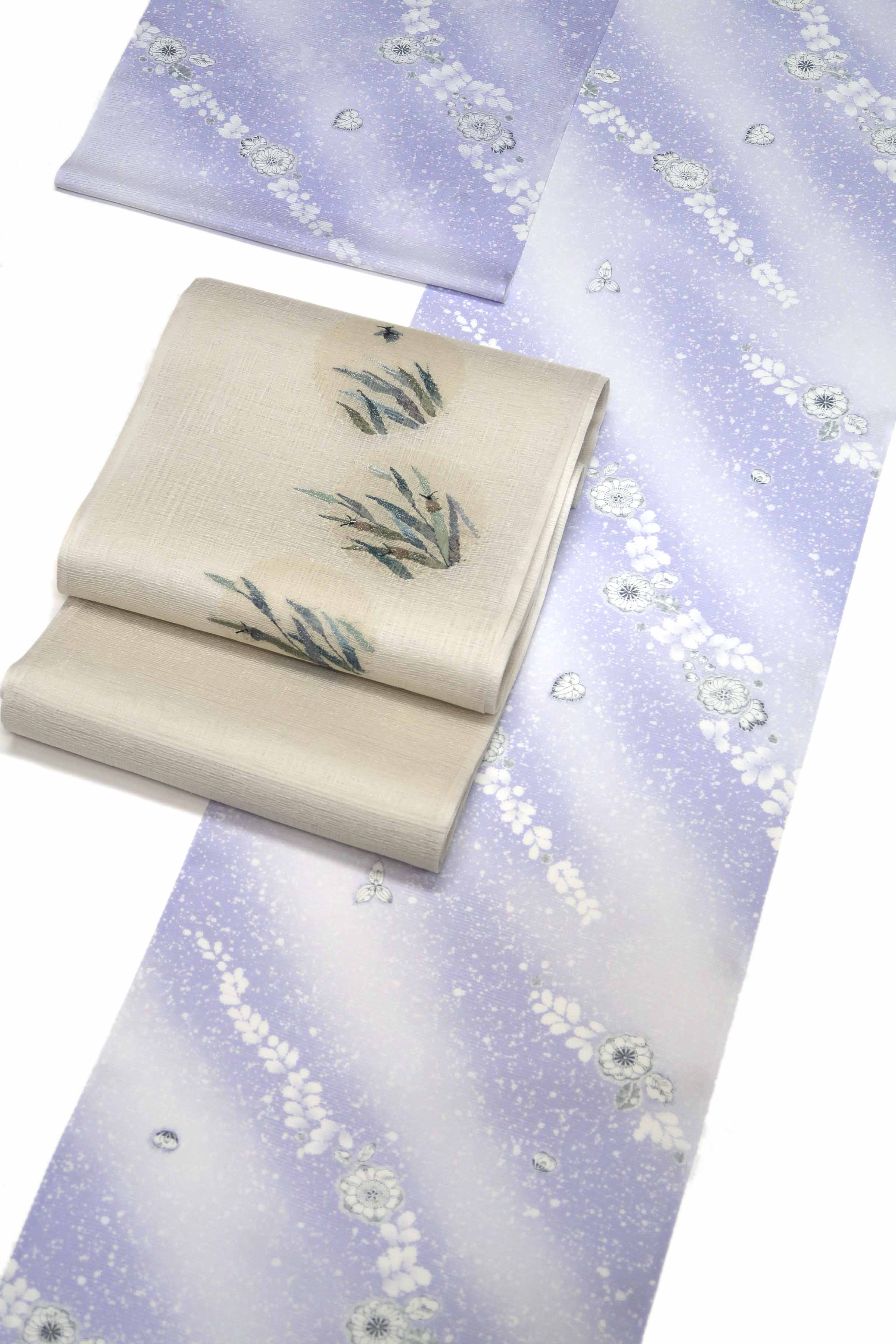紗とは、搦み織、あるいは、捩り織といわれる布面に隙間のある織物。羅に次ぐ難しい織物ですが、すでに奈良時代には唐から伝来し正倉院裂として残されています。特に冷房のなかった時代には、暑い夏の衣服として重用されましたが、現代でも25℃を超えるような夏日には、正絹の紗に勝る生地はないように思います。何より軽くて動きやすく、通気性が良いので涼しいばかりか、汗ばむ時期には吸汗性と発汗性に優れ、冷房の効いた室内では一定の保温効果もあります。やはり、宙を舞う蝶の生命カプセル「繭の糸」以上の繊維は無いように思います。