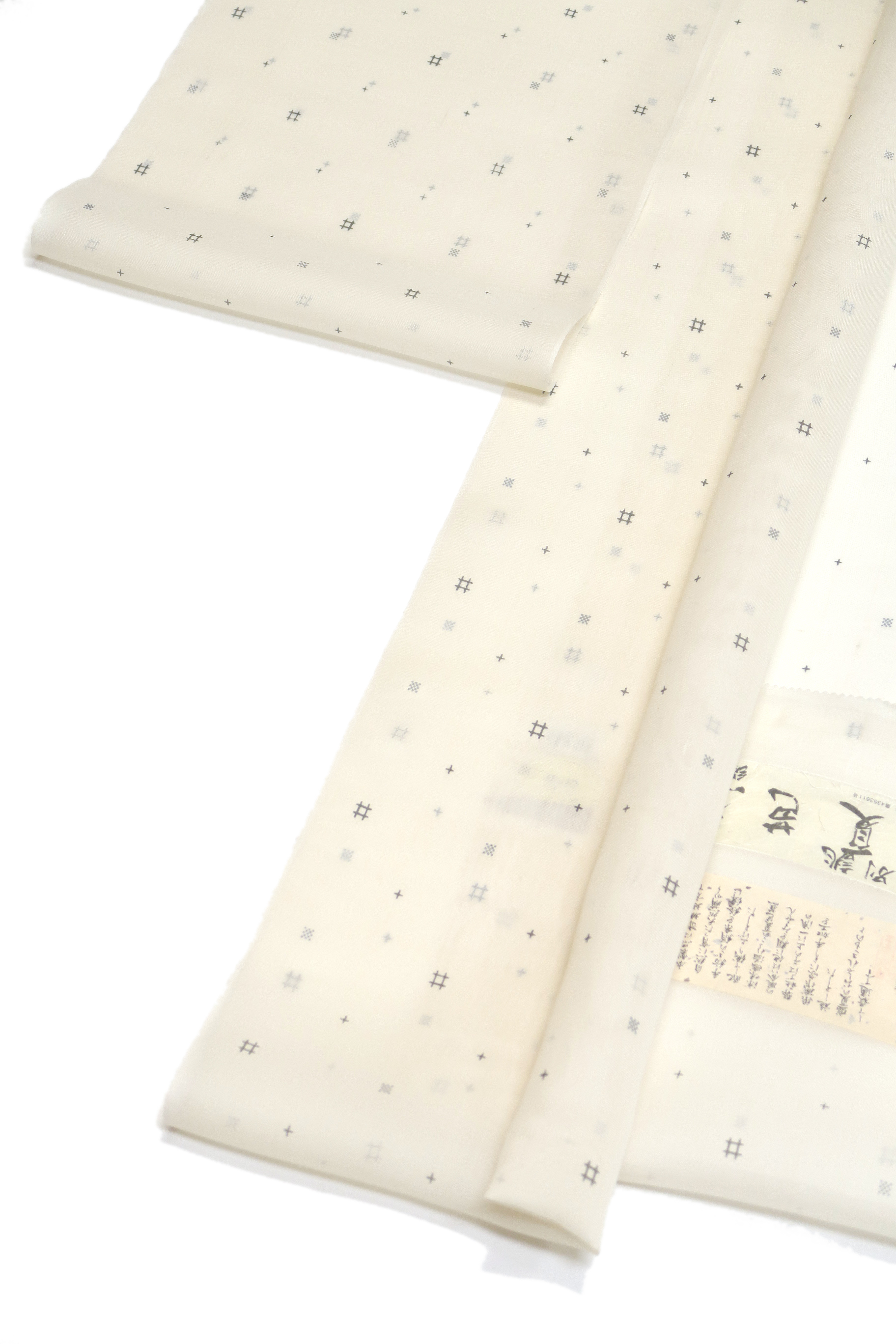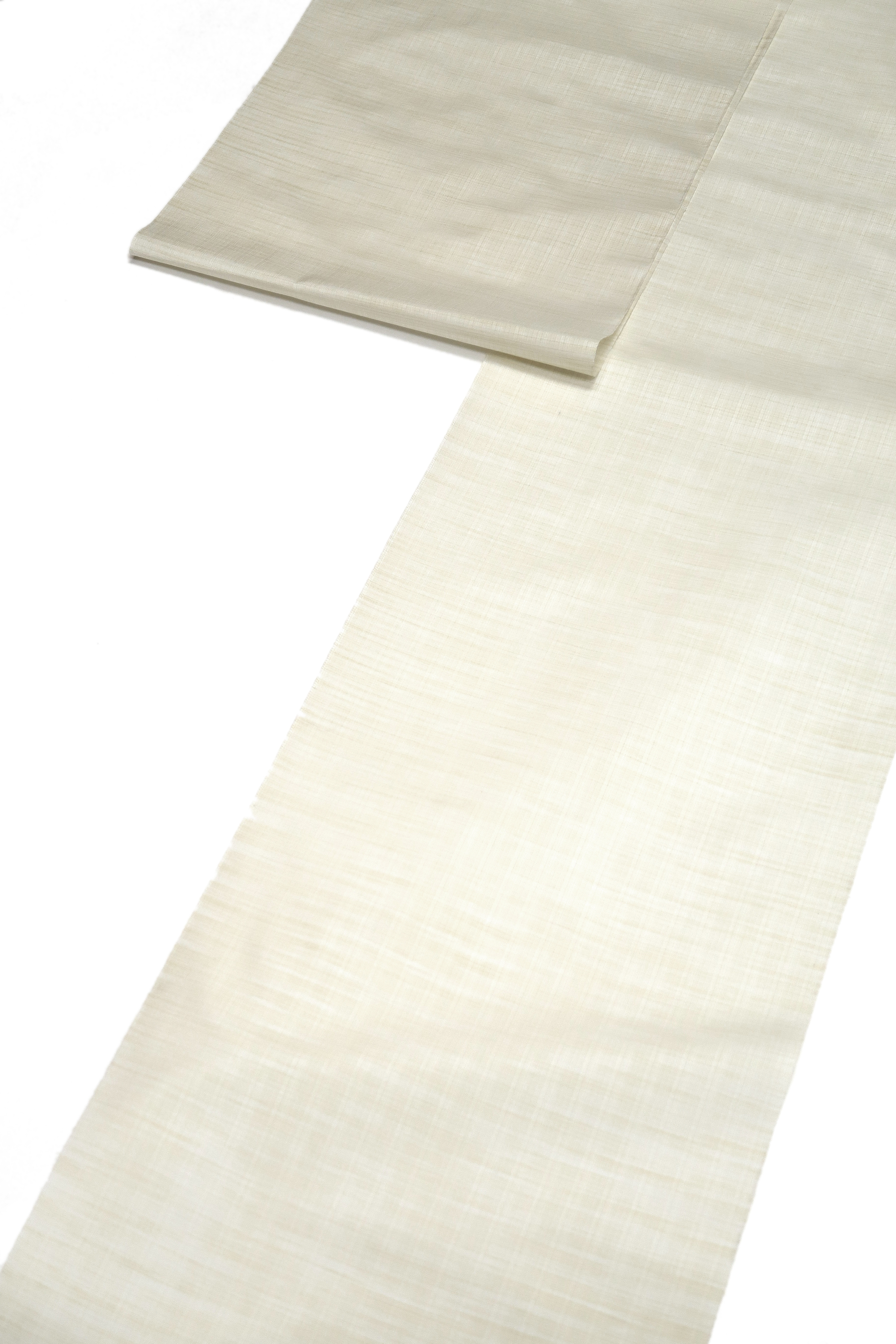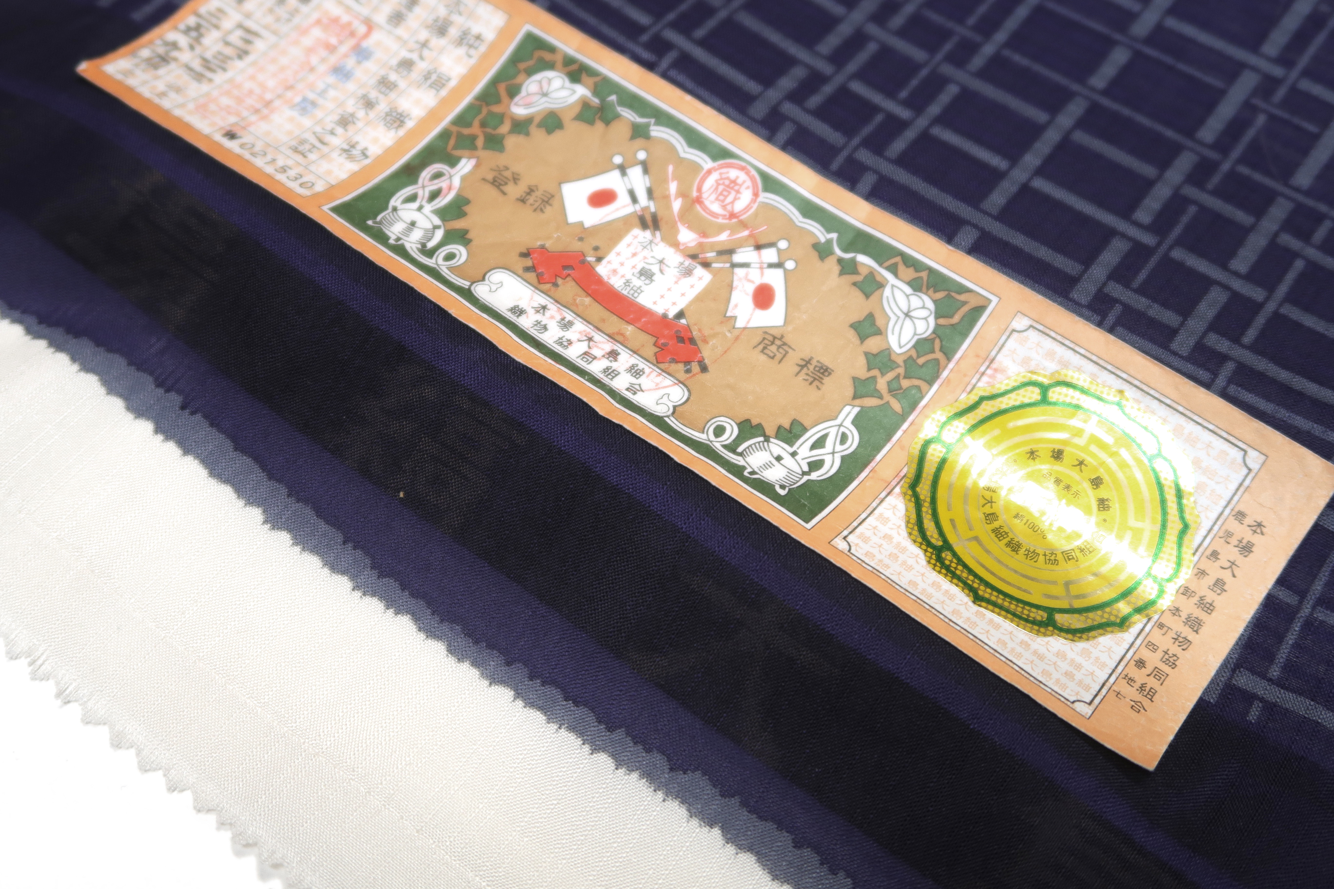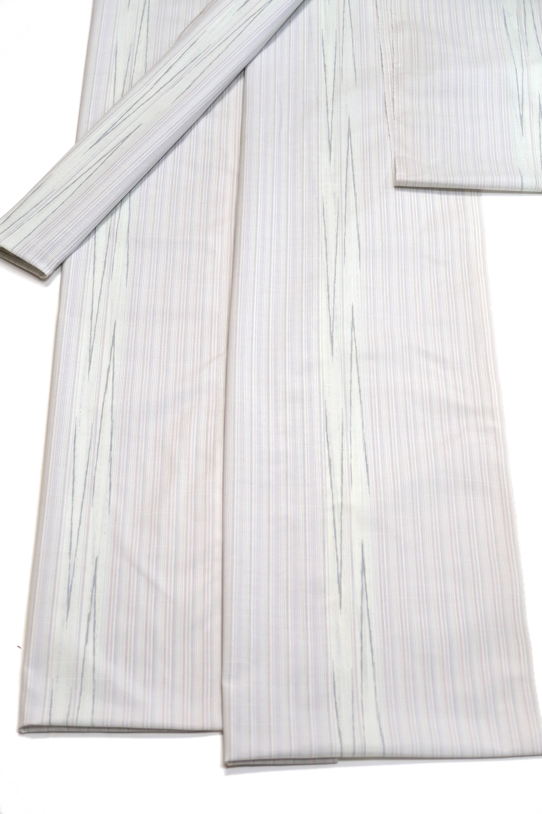 このきものは、経糸に色柄を染めた絣糸を使って織られた経双夏大島です。夏大島独特のお洒落な透け感と、軽くて、さばきの良い単衣のきものや夏のコートとしてご愛用いただけます。