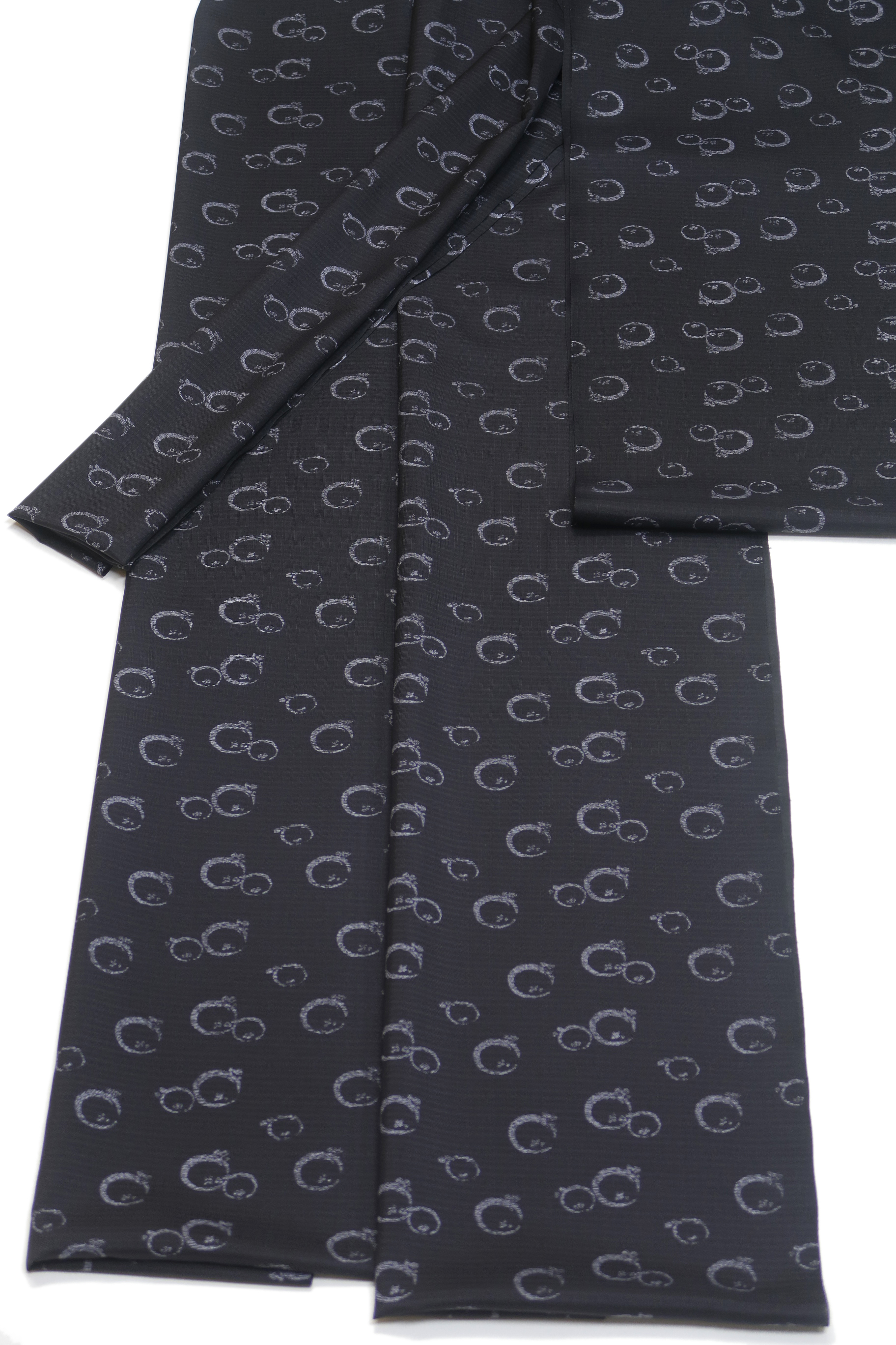 このきものは、緯糸に色柄を染めた絣糸を使って織られた緯双夏大島です。夏大島独特のお洒落な透け感と、軽くて、さばきの良い単衣のきものとしてご愛用いただけます。