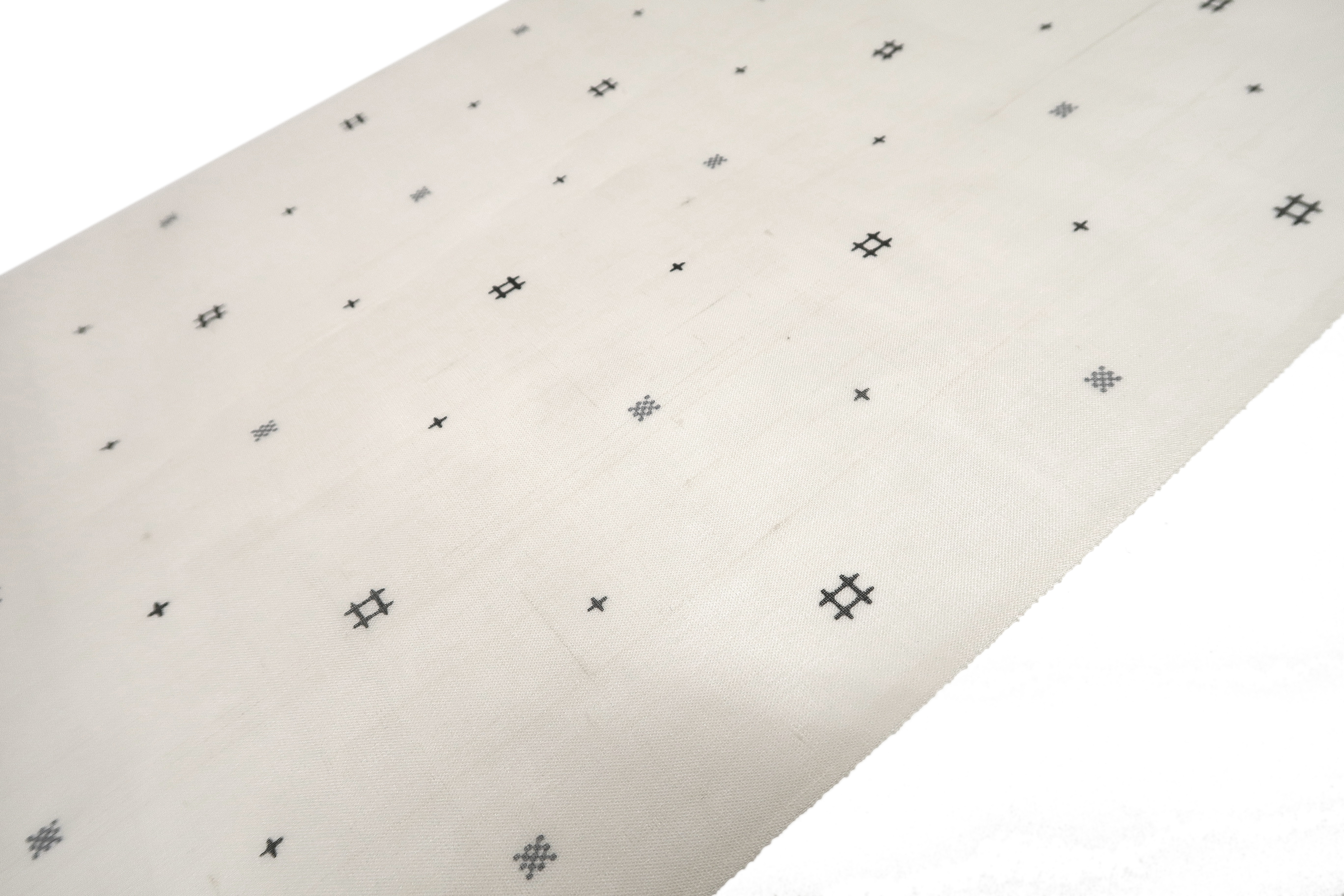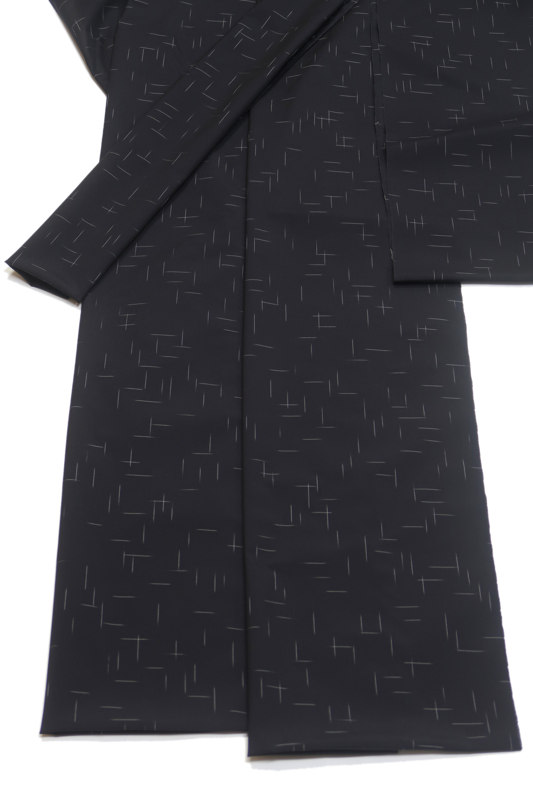 このきものは、経緯(たてよこ)糸に色柄を染めた絣糸を使って織られた経緯(たてよこ)絣の夏大島です。夏大島独特のお洒落な透け感と、軽くて、さばきの良い単衣のきものとしてご愛用いただけます。